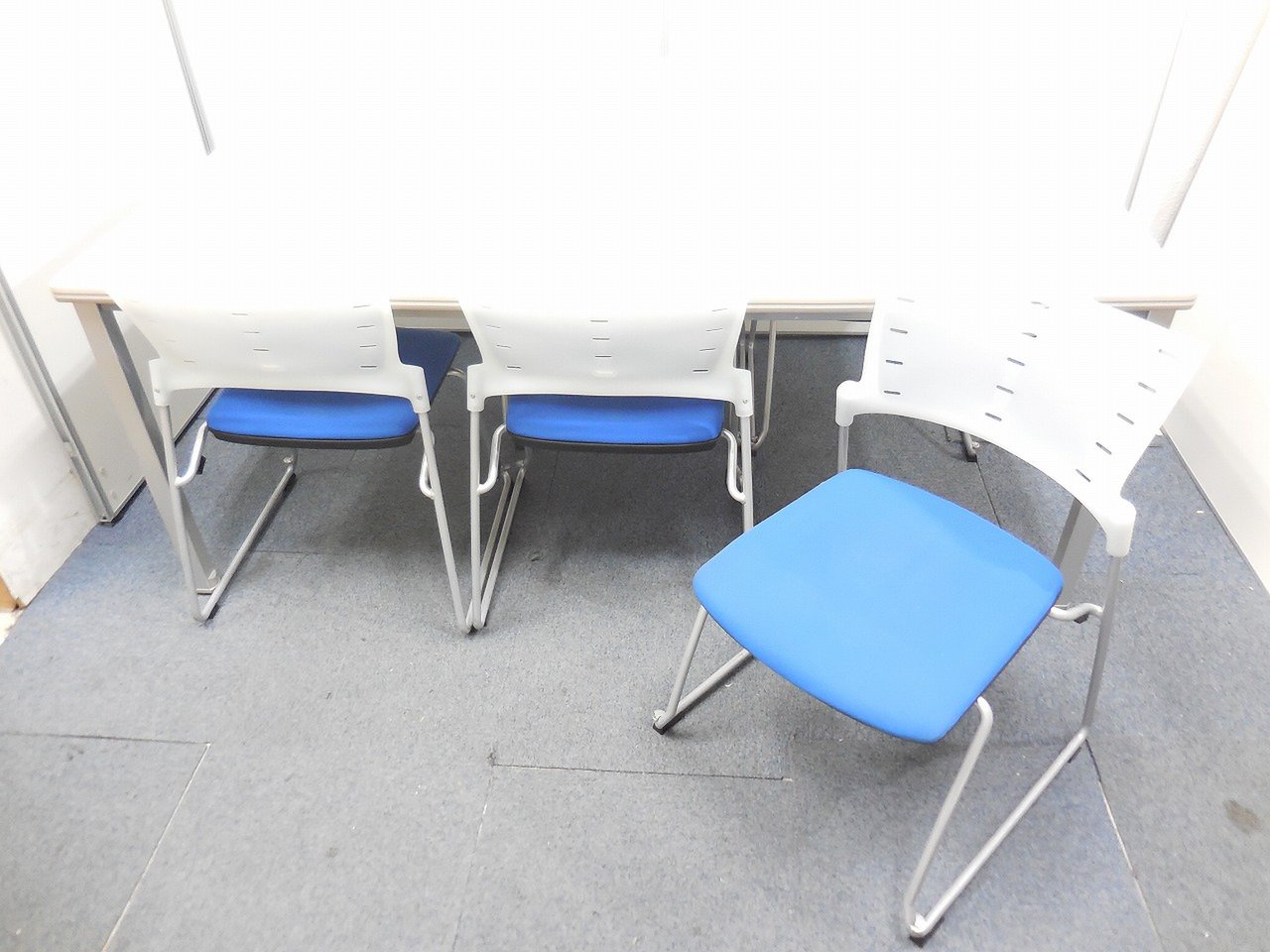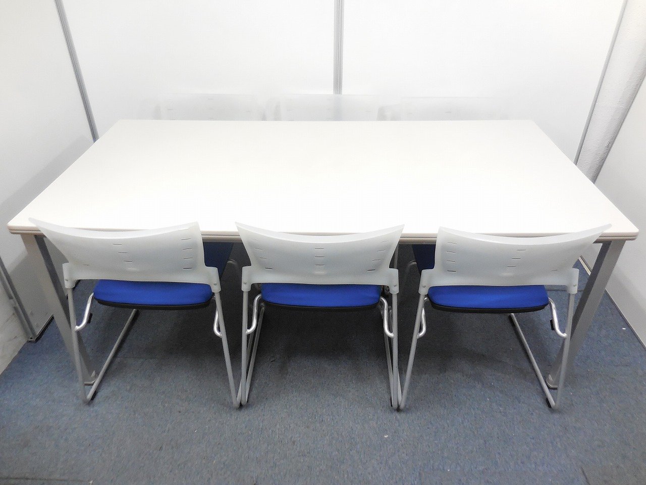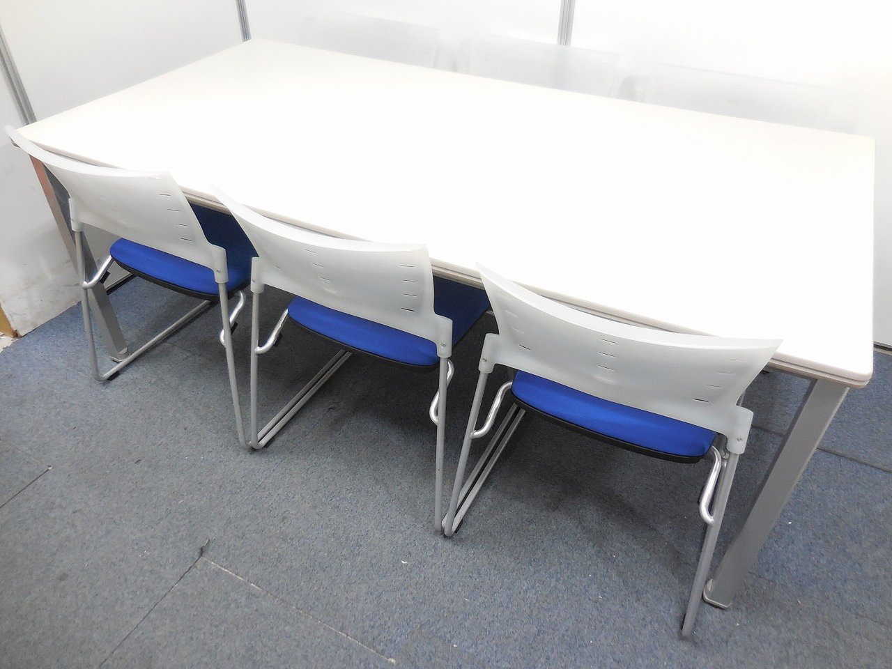 【ホワイトグレーカラーの明るい天板がオススメ!】ミーティングテーブル+マノススタッキングチェア×6脚セット- 横浜本店