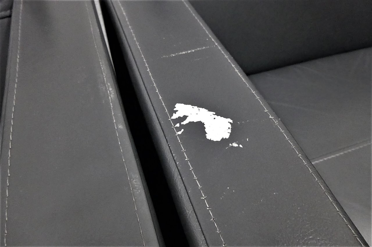 - あり黄ばみ・変色が広い範囲にうっすらある、または濃い黄ばみ・変色が一部ある。(例、座面・背もたれ、脚部等にある。)