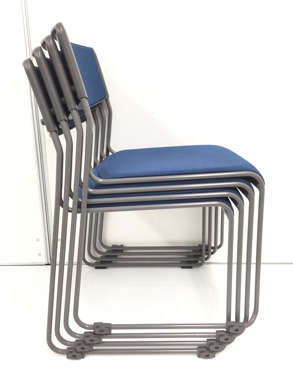 スタッキングチェア4脚セットです。脚部分に隣の椅子とつなげるパーツあり。