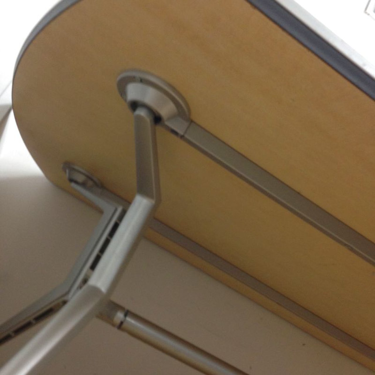 - 一部不具合あり天板歪み、アジャスター無し、キャスター使用不可ようなそのテーブルの本来の効用を果たすための機能以外の一部が使用不可な状態。(例、キャスターロッ ク機能使用不可、棚板無し等がある。)