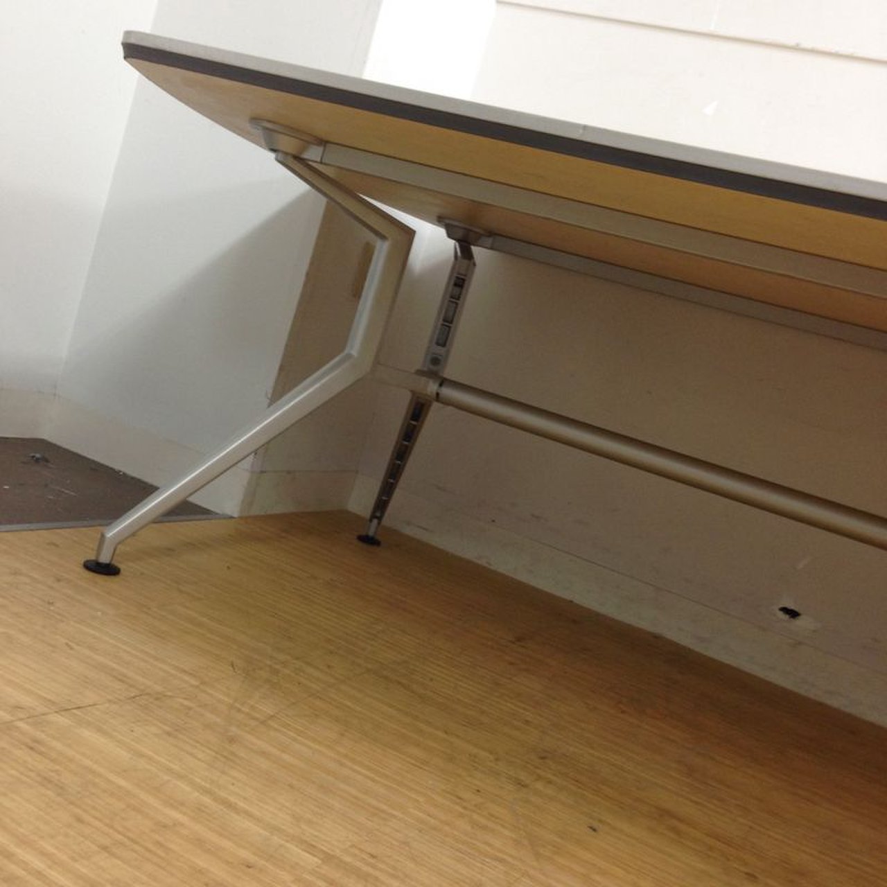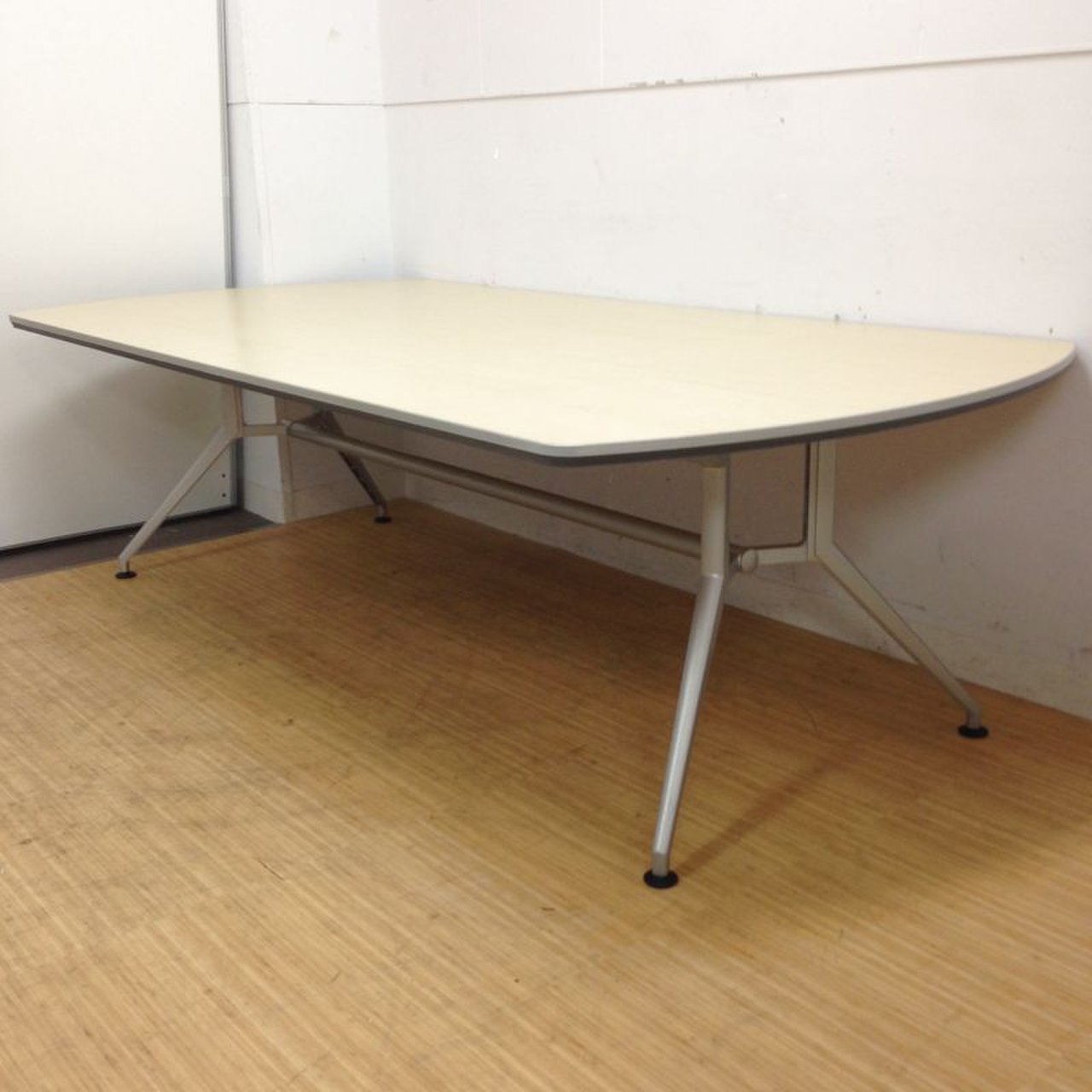 【会議室だけでなく休憩室でも!6~8名様対応・大型テーブル】■イトーキ(ITOKI) DDDシリーズ ミーティングテーブル 会議テーブル 幅2400×奥行900mm ■木目ナチュラル天板 脚シルバー色 オフィスバスターズ東大阪店