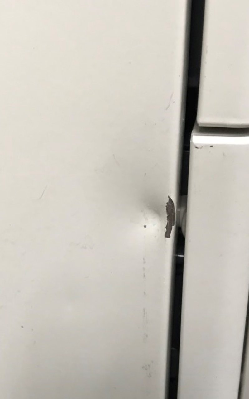 - 目立つ箇所あり傷・凹みが多数、深い傷・凹みが一部ある。(例、天板、正面、背後、サイド部分にある。)