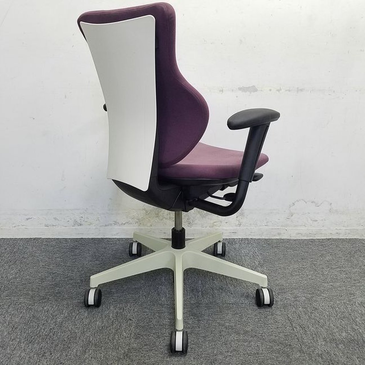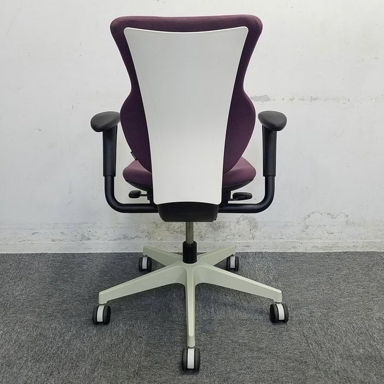 - 女性の作業姿勢に多く見られる2つの姿勢を、美しく支える背もたれ形状です。後傾しても背のラインを崩しません。