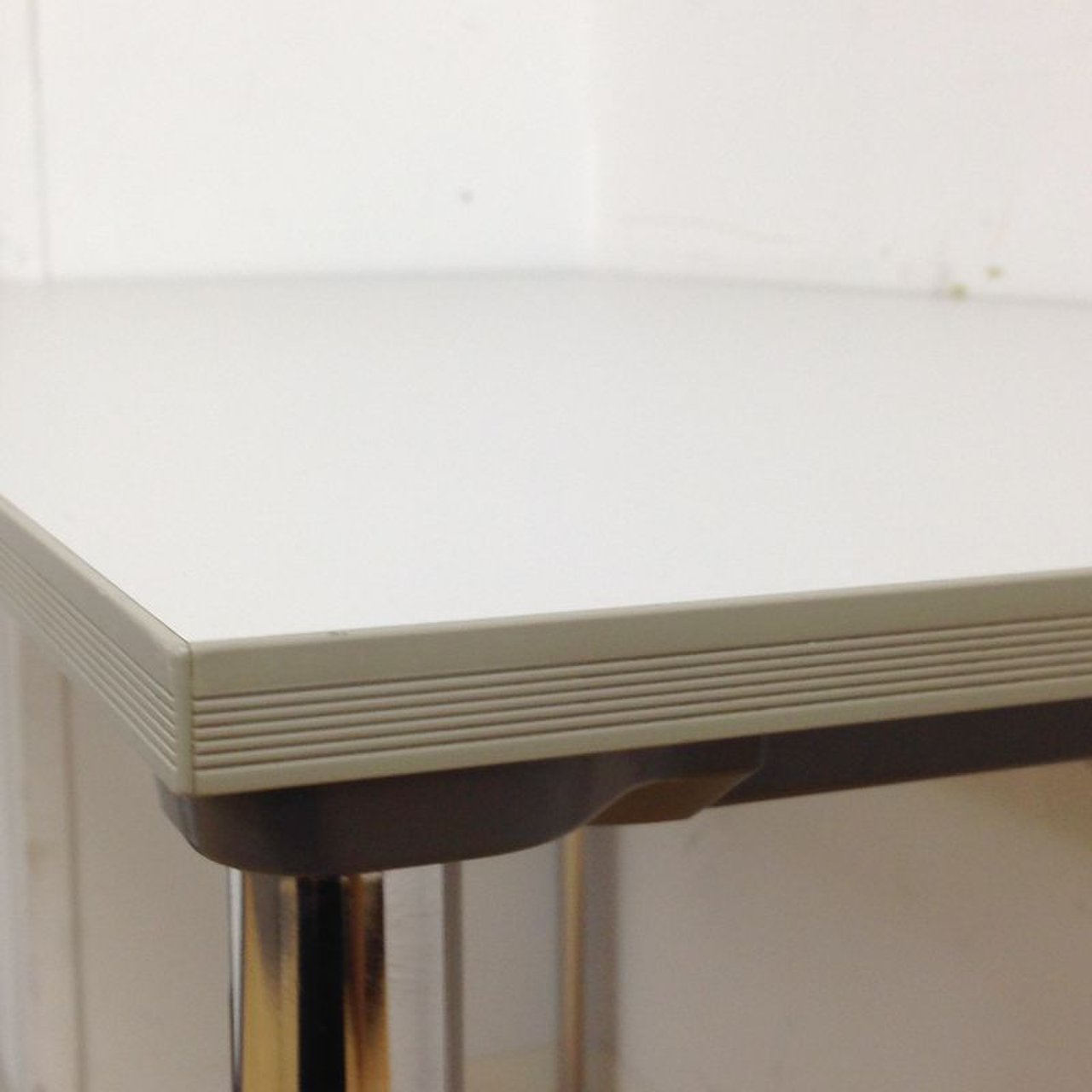 - 一部不具合あり天板歪み、アジャスター無し、キャスター使用不可ようなそのテーブルの本来の効用を果たすための機能以外の一部が使用不可な状態。(例、キャスターロッ ク機能使用不可、棚板無し等がある。)