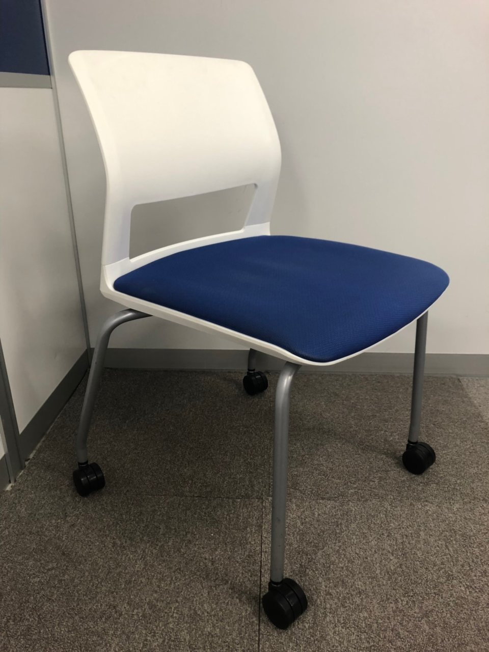 【重ねて収納可能!スペースの削減にお勧めなスタッキングチェア!】■コクヨ(KOKUYO)製 CK-160 スタッキングチェア ミーテイングチェア ■背カバーあり ■ブルー×ホワイトシェル