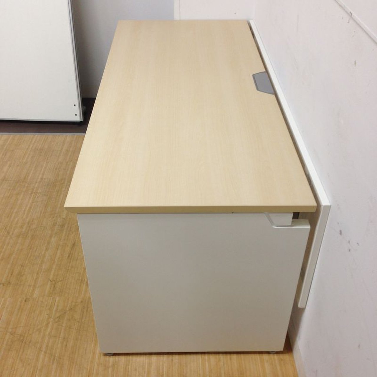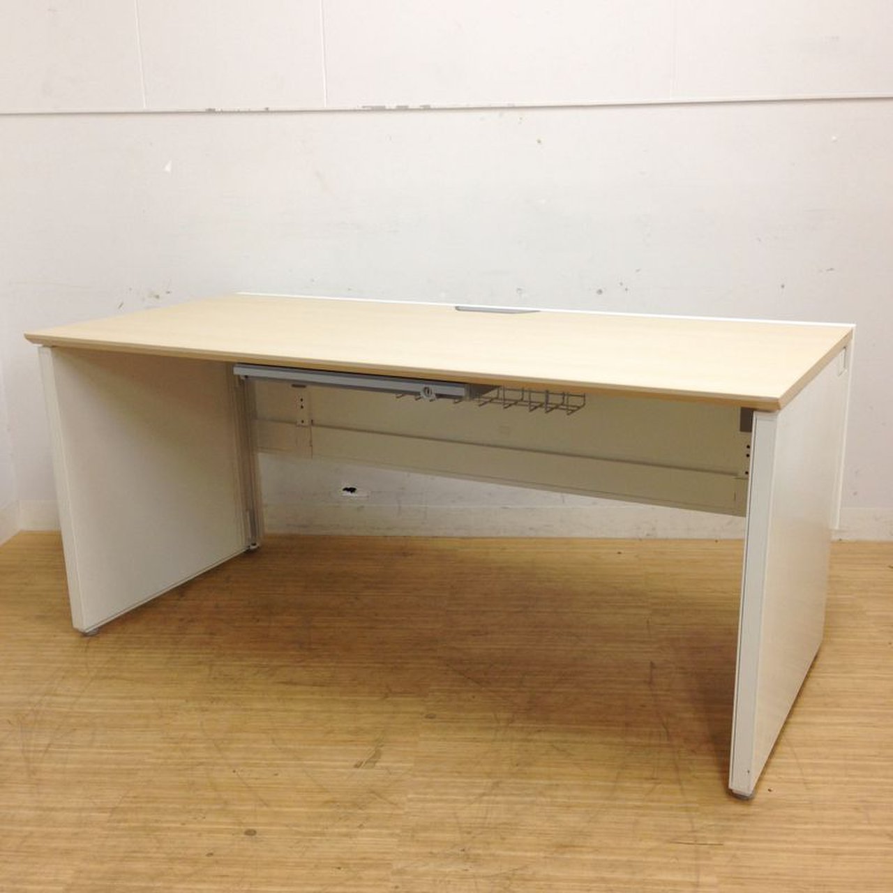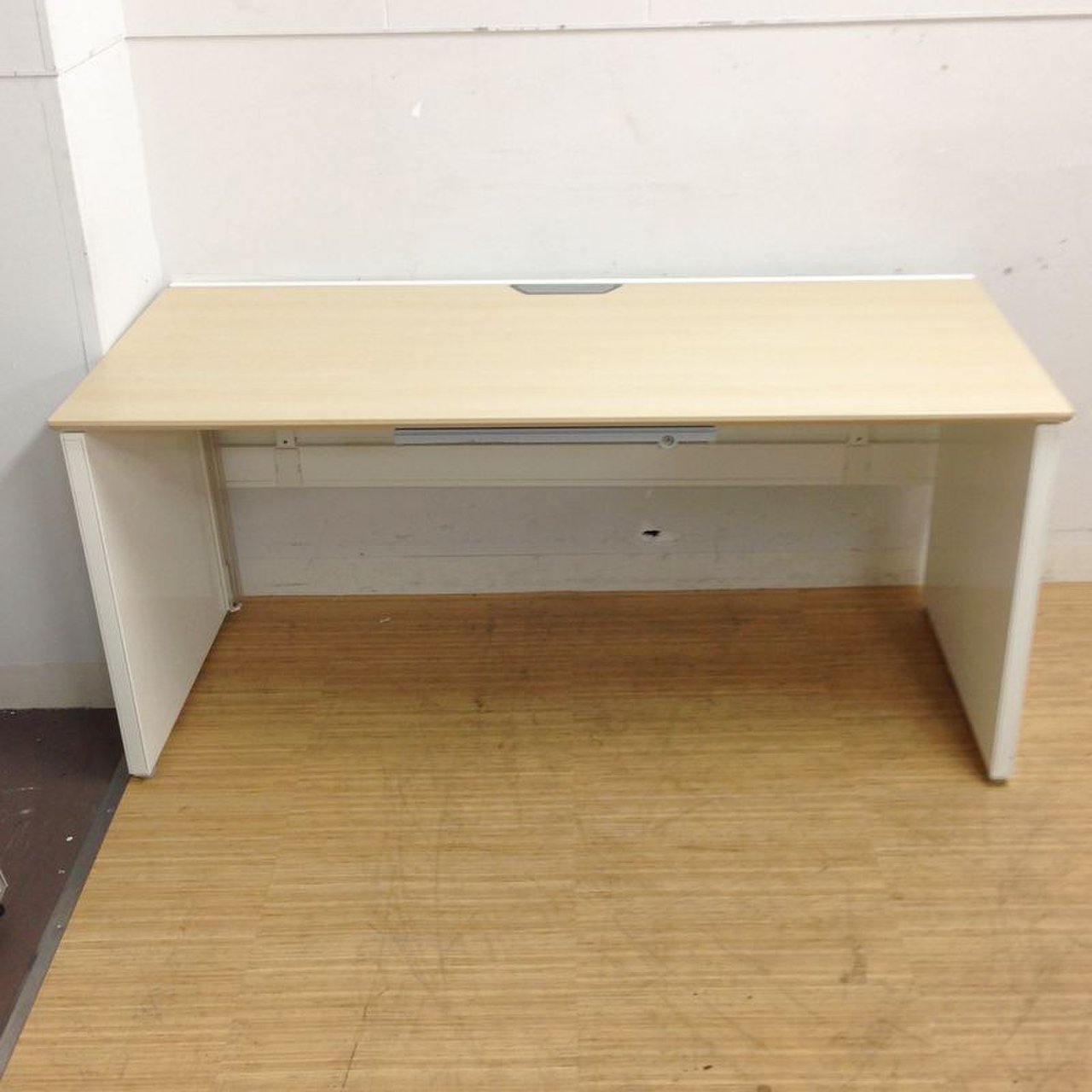 おしゃれな木目調(ナチュラル色)の天板にホワイトのパネル脚のW1600デスク