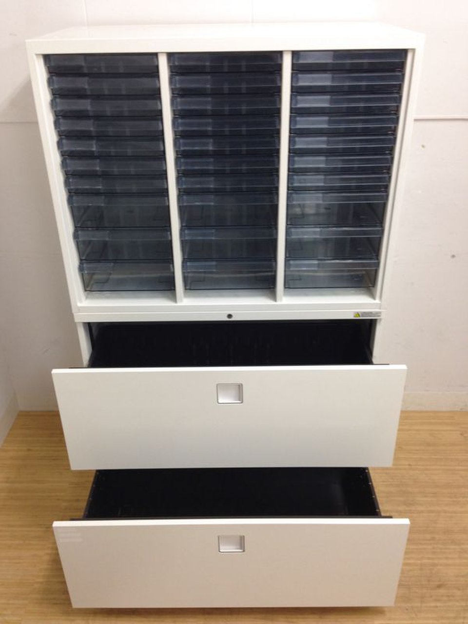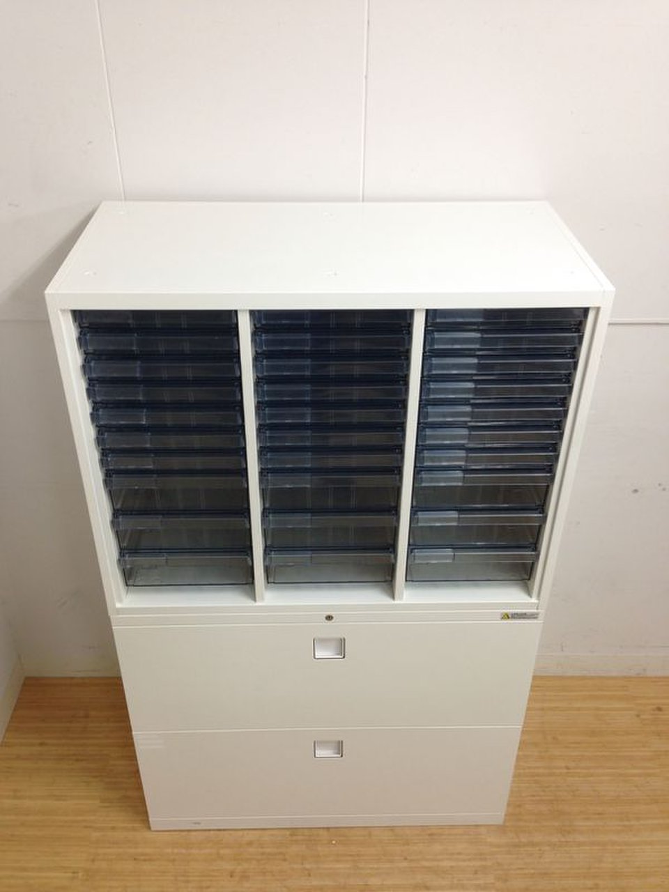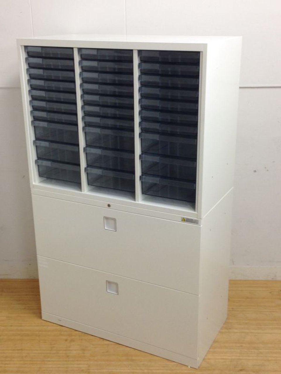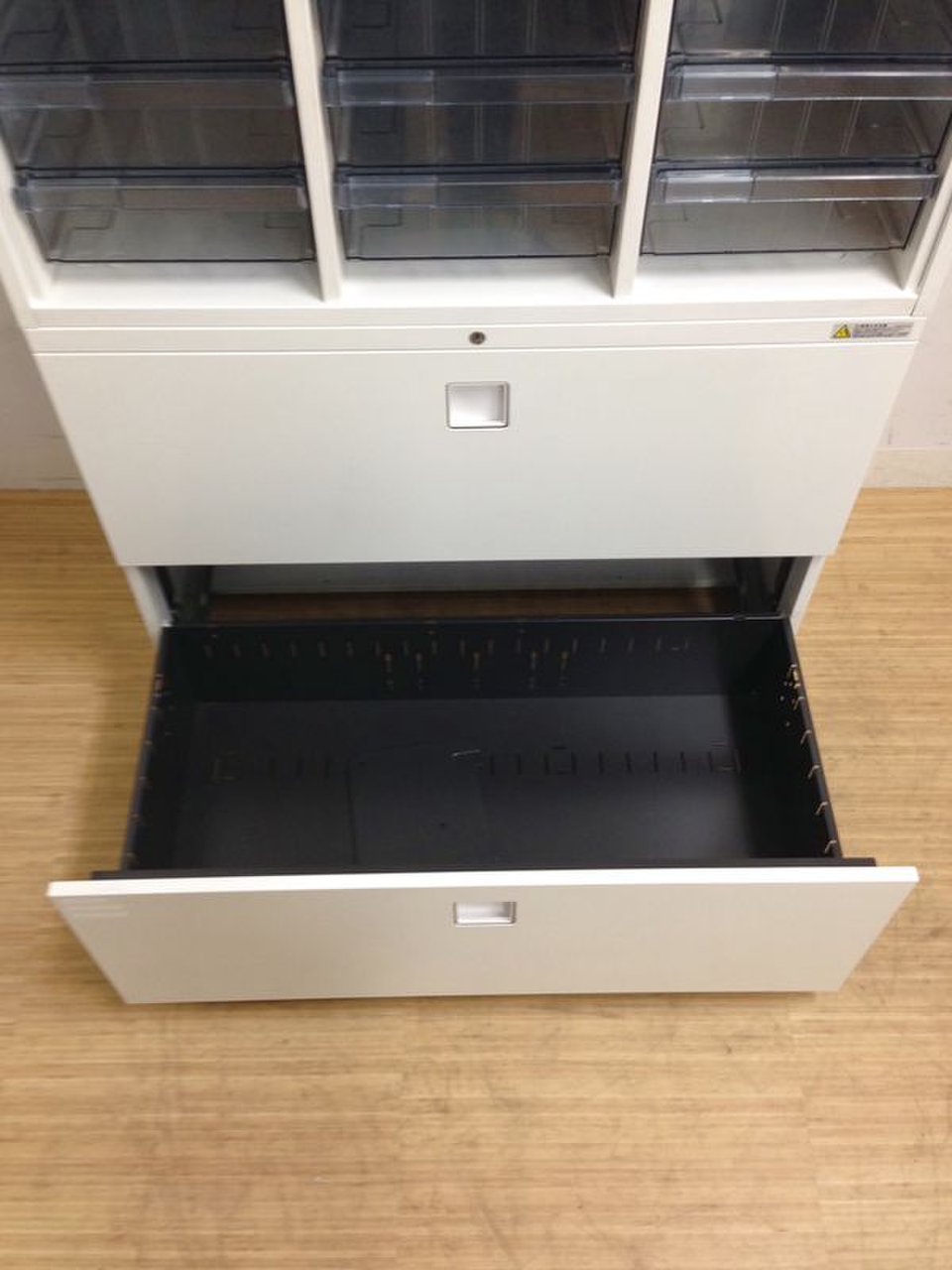 【レア】【低めサイズ】使い勝手良好な2段ラテラル+トレー書庫セット【状態良好】- 名古屋千種店
