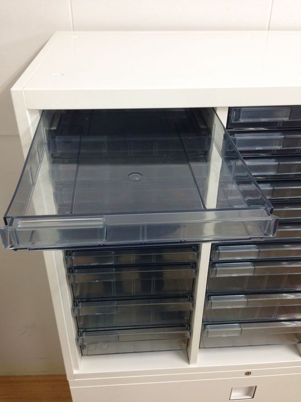 低い位置でも使い勝手の良い2段の引き出しタイプの書庫です。