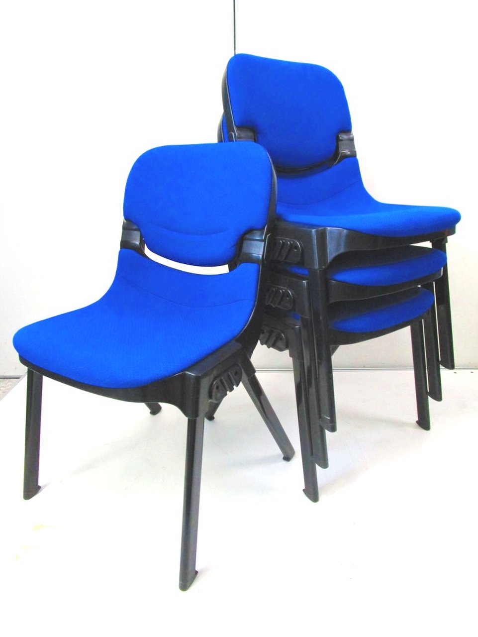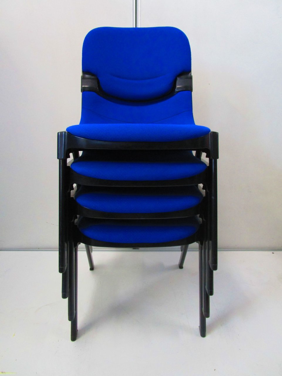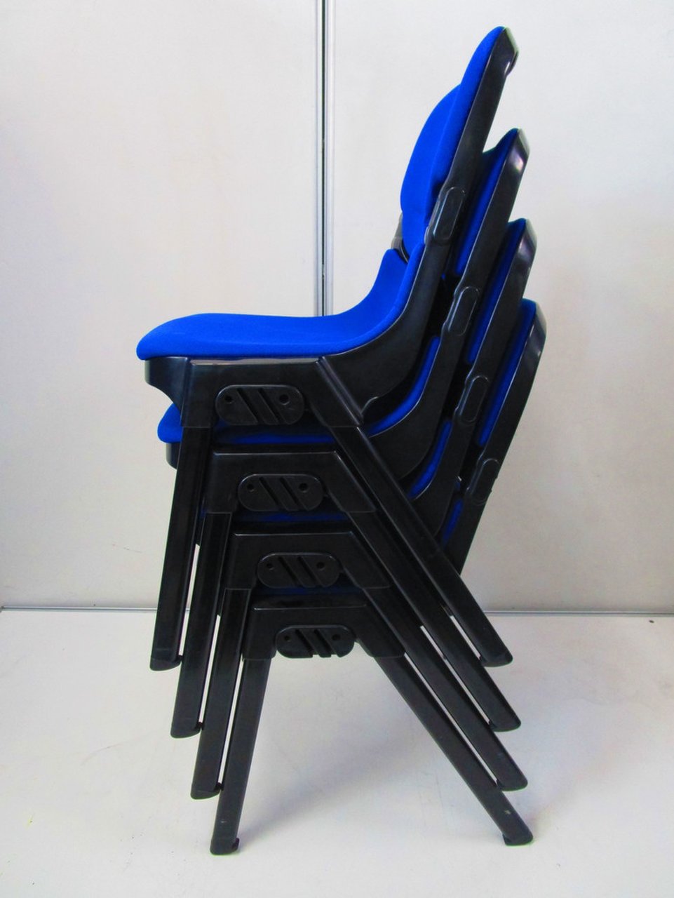 4脚セットのお買い得商品!すべてブルーのきれいなスタッキングチェア!オカムラ製なので、品質も安心・安全!これから起業・移転の方に【限定1セット】- 埼玉本店