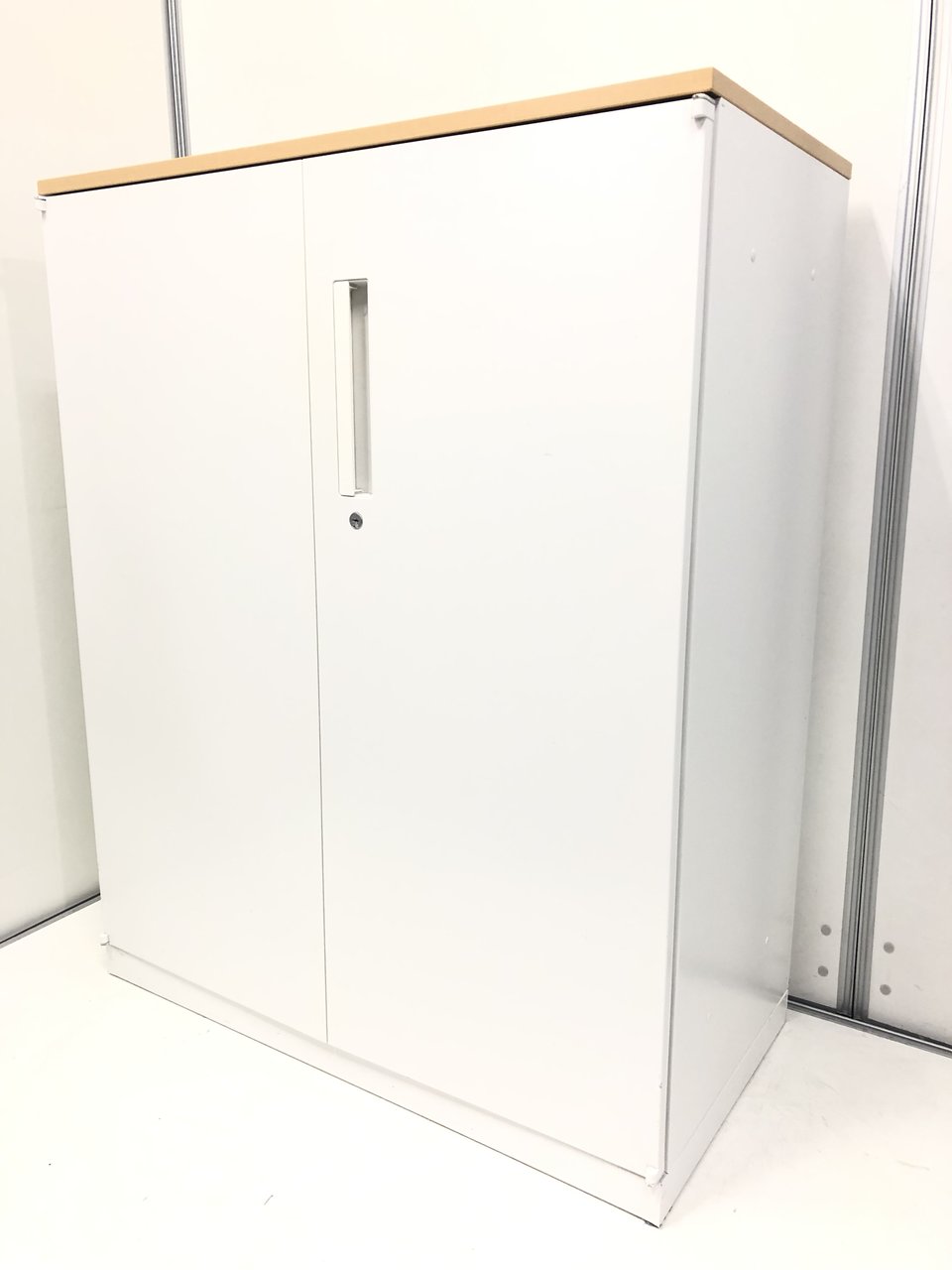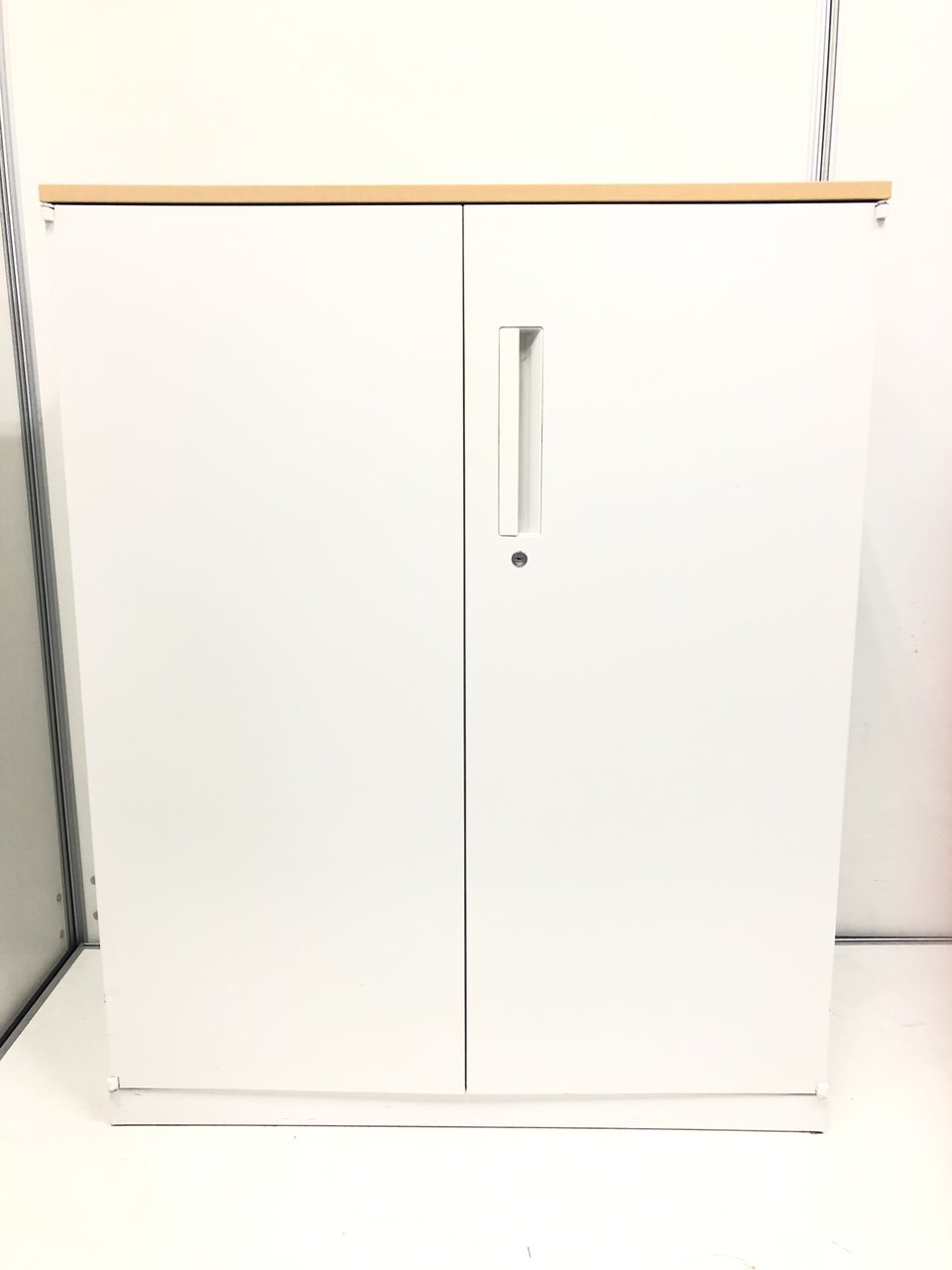 【在庫入替セール品!】人気の観音開きタイプ!取っ手が大きく使い勝手のよい定番キャビネット! ■内田洋行/HSシリーズ/ホワイト 天板ナチュラル