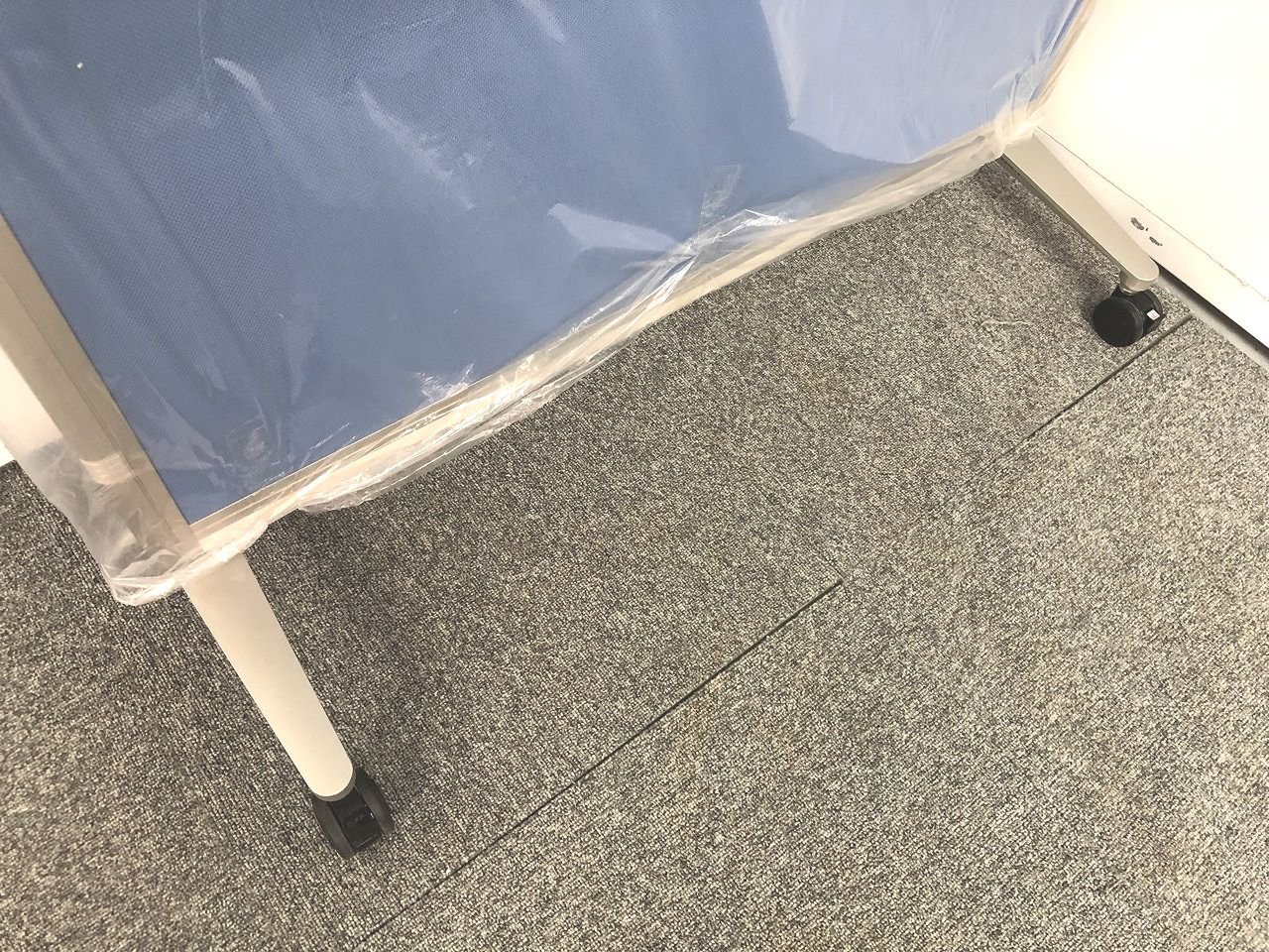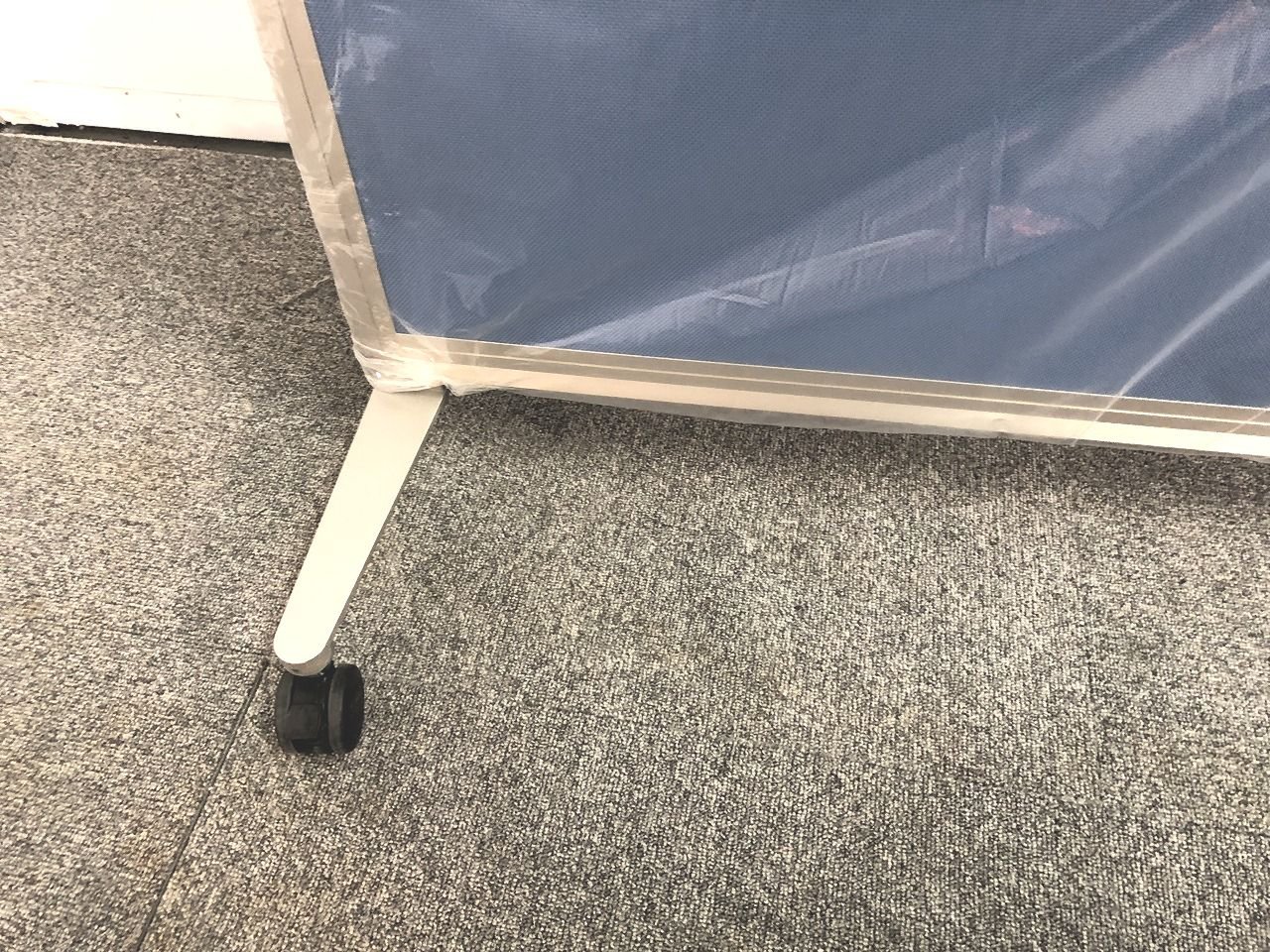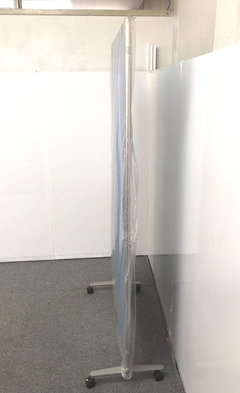 パーテーションは袋入りの未使用品ですが、キャスター脚はむき出しなので中古での販売になります。