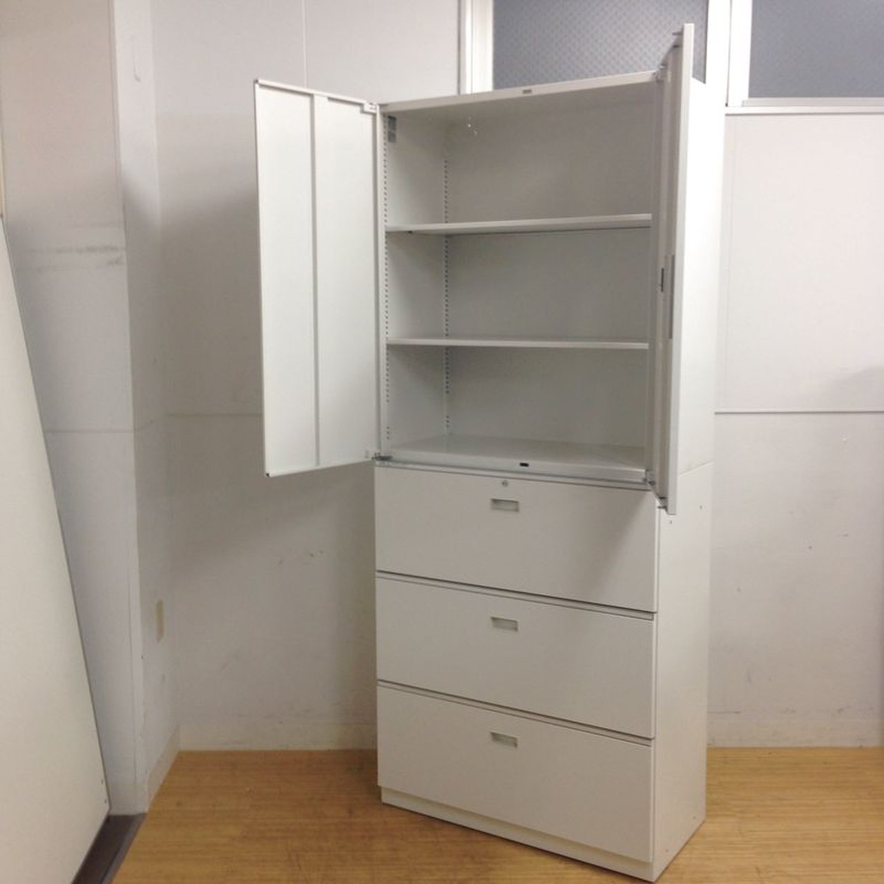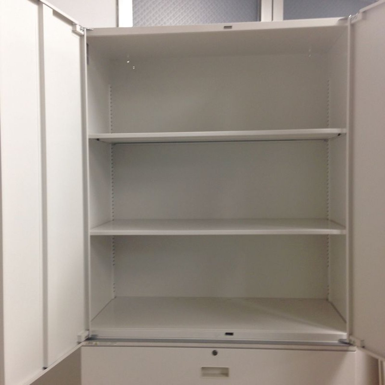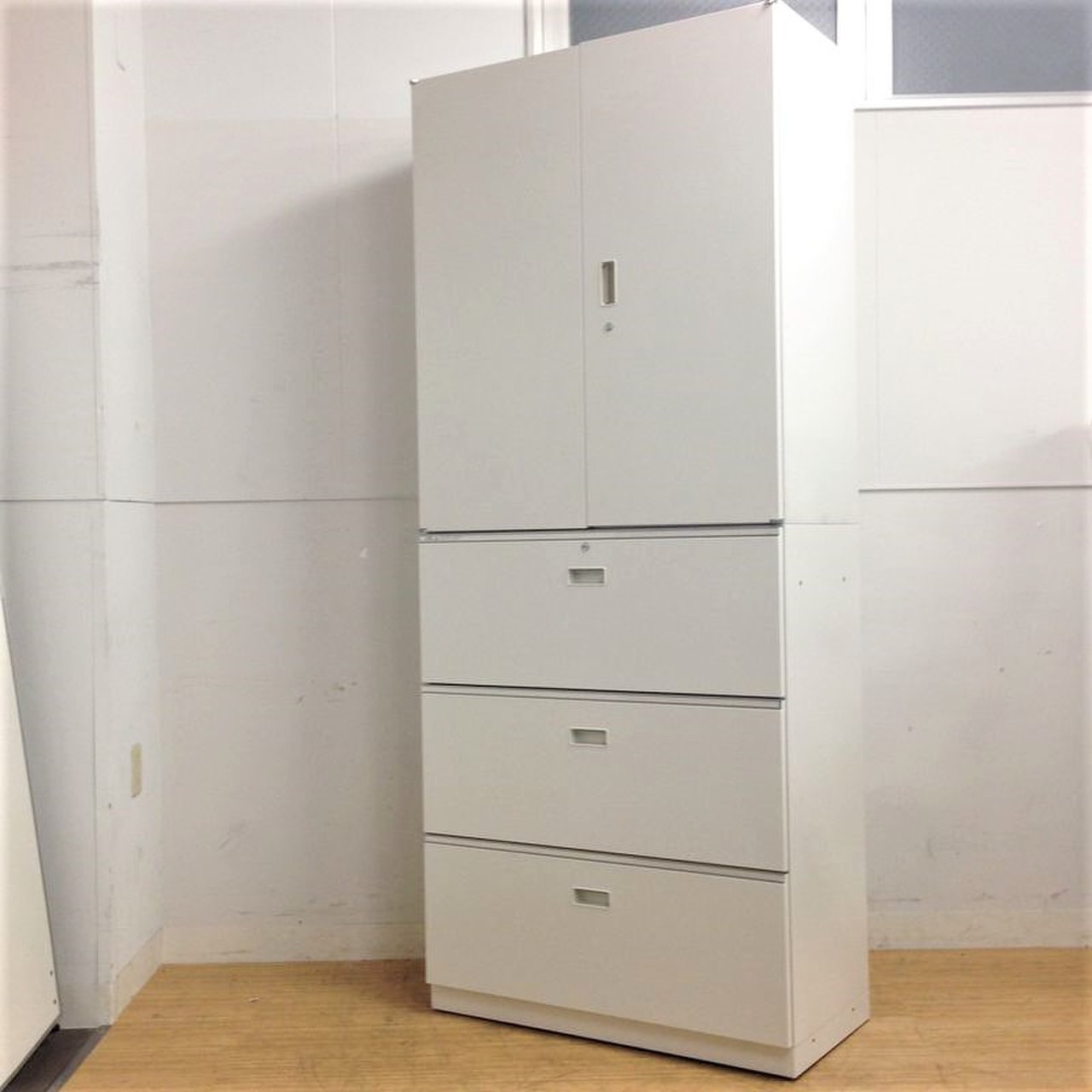 落ち着いたホワイトの上下収納キャビネット イトーキ(ITOKI) シンライン(THIN LINE) ★もちろん鍵付き- 名古屋千種店