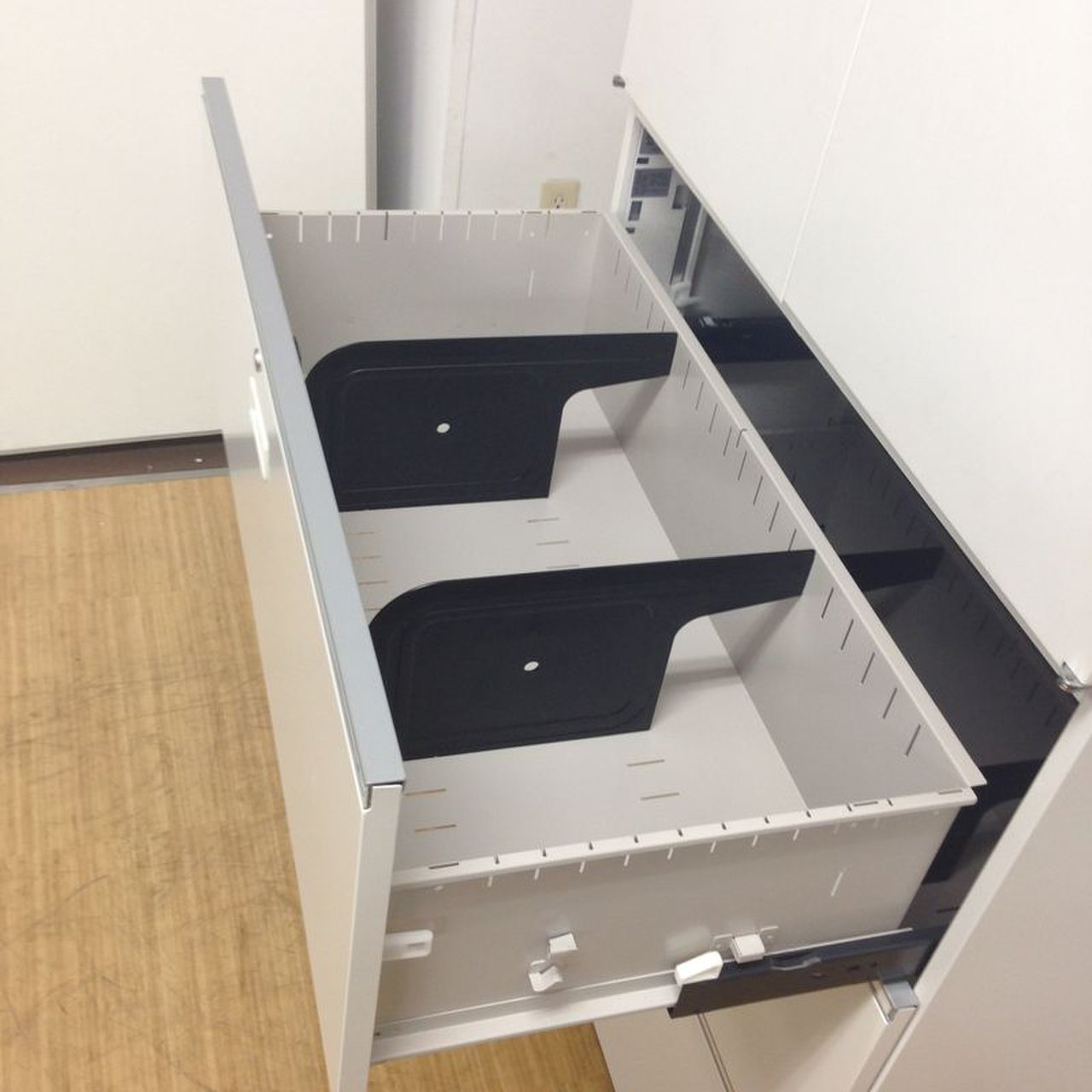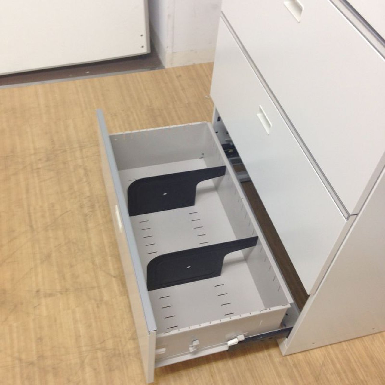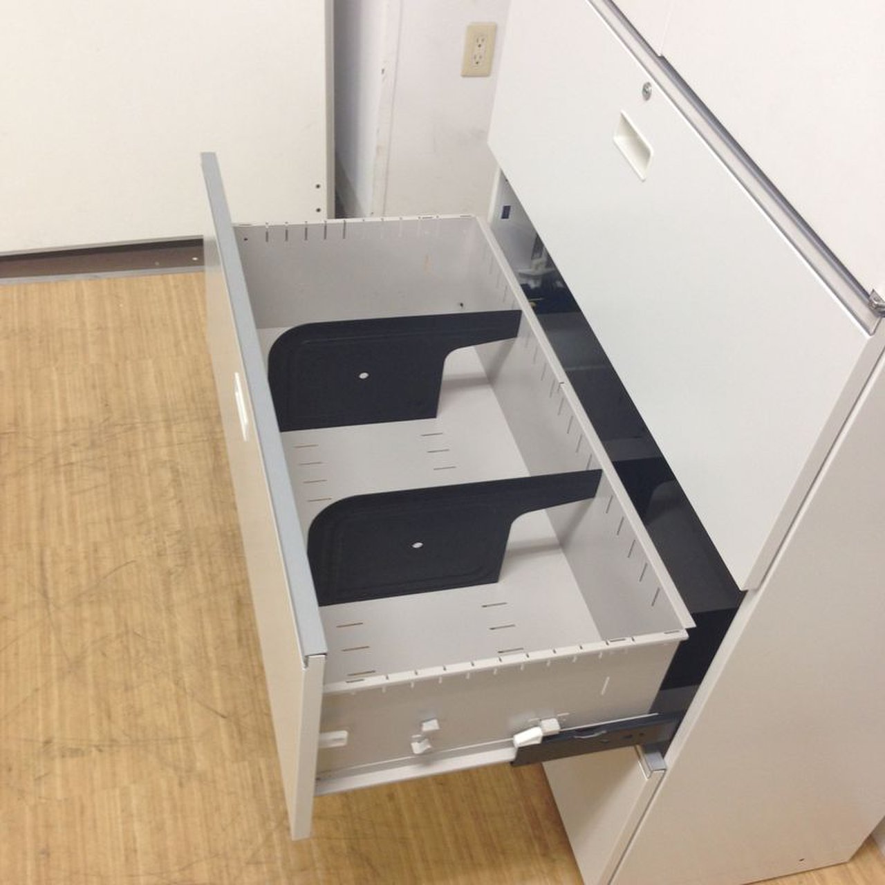 - 多数不具合あり引出の開閉不可、施錠不可、棚板無しといったその書庫の本来の効用を果たすための機能以外の多数が使用不可(例、扉、引出の開閉がしづらいなどがある。 )