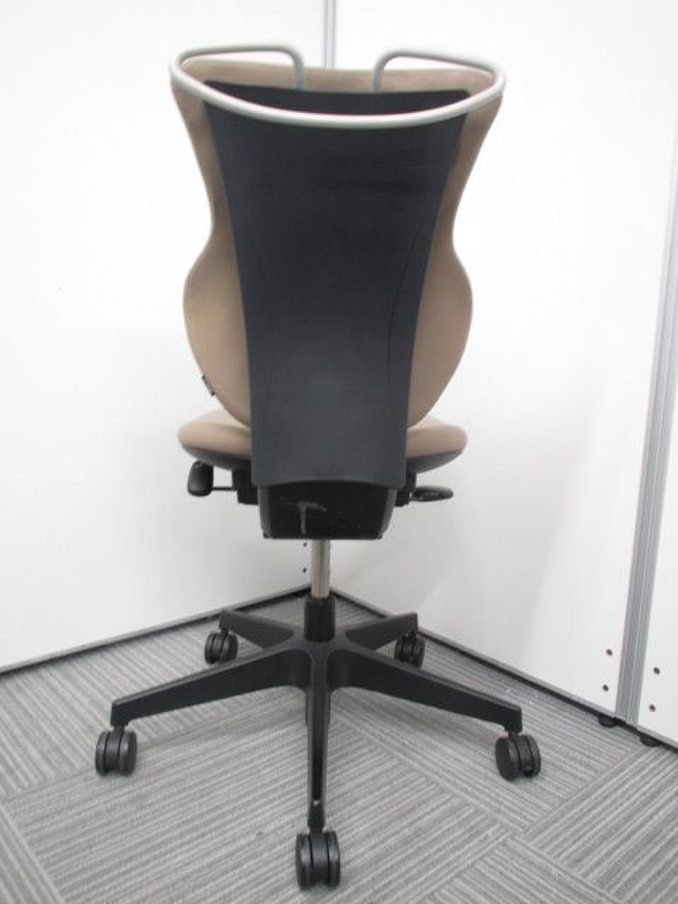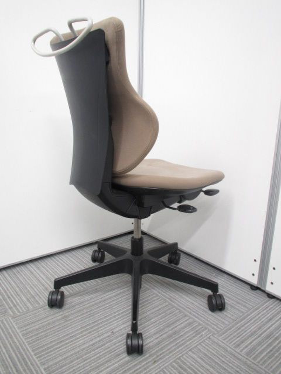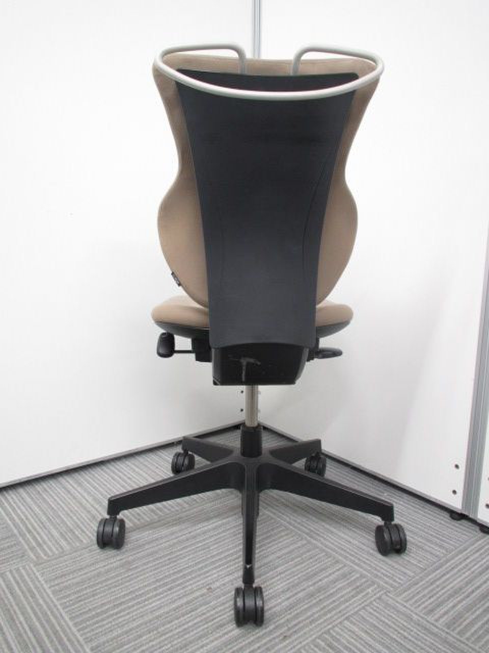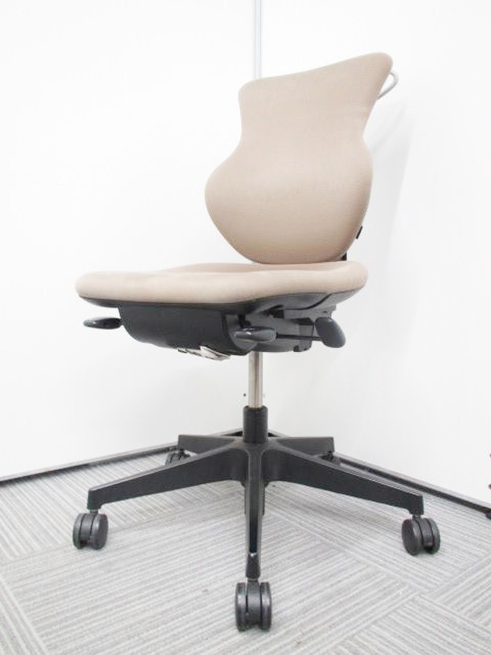- 女性の作業姿勢に多く見られる2つの姿勢を、美しく支える背もたれ形状です。後傾しても背のラインを崩しません。