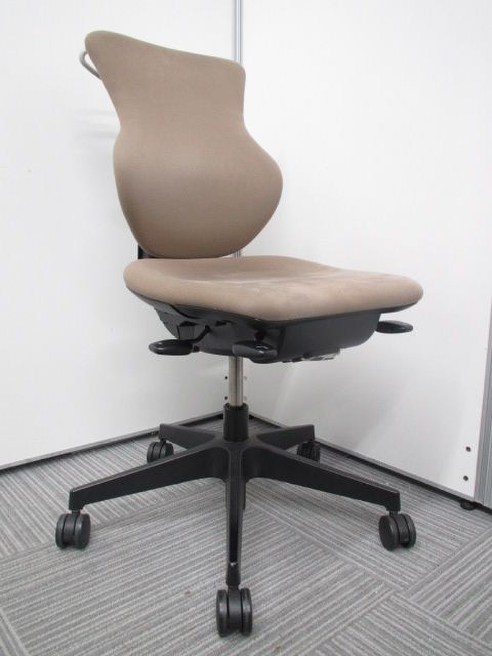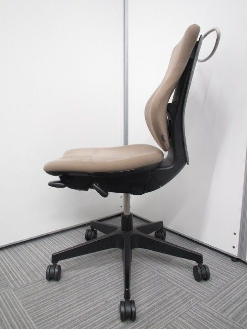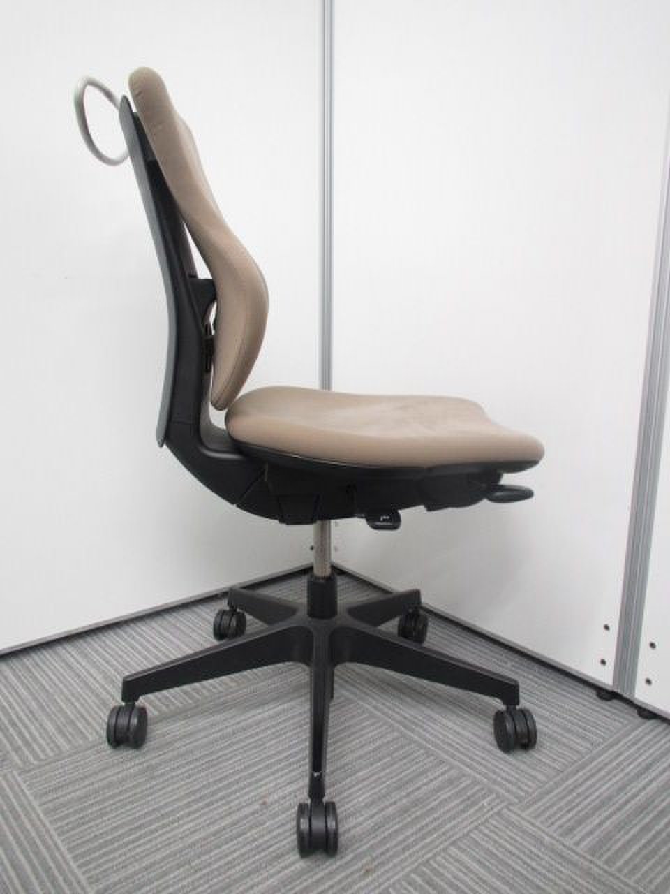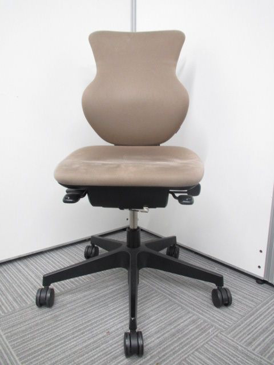 - 女性の作業姿勢に多く見られる2つの姿勢を、美しく支える背もたれ形状です。後傾しても背のラインを崩しません。