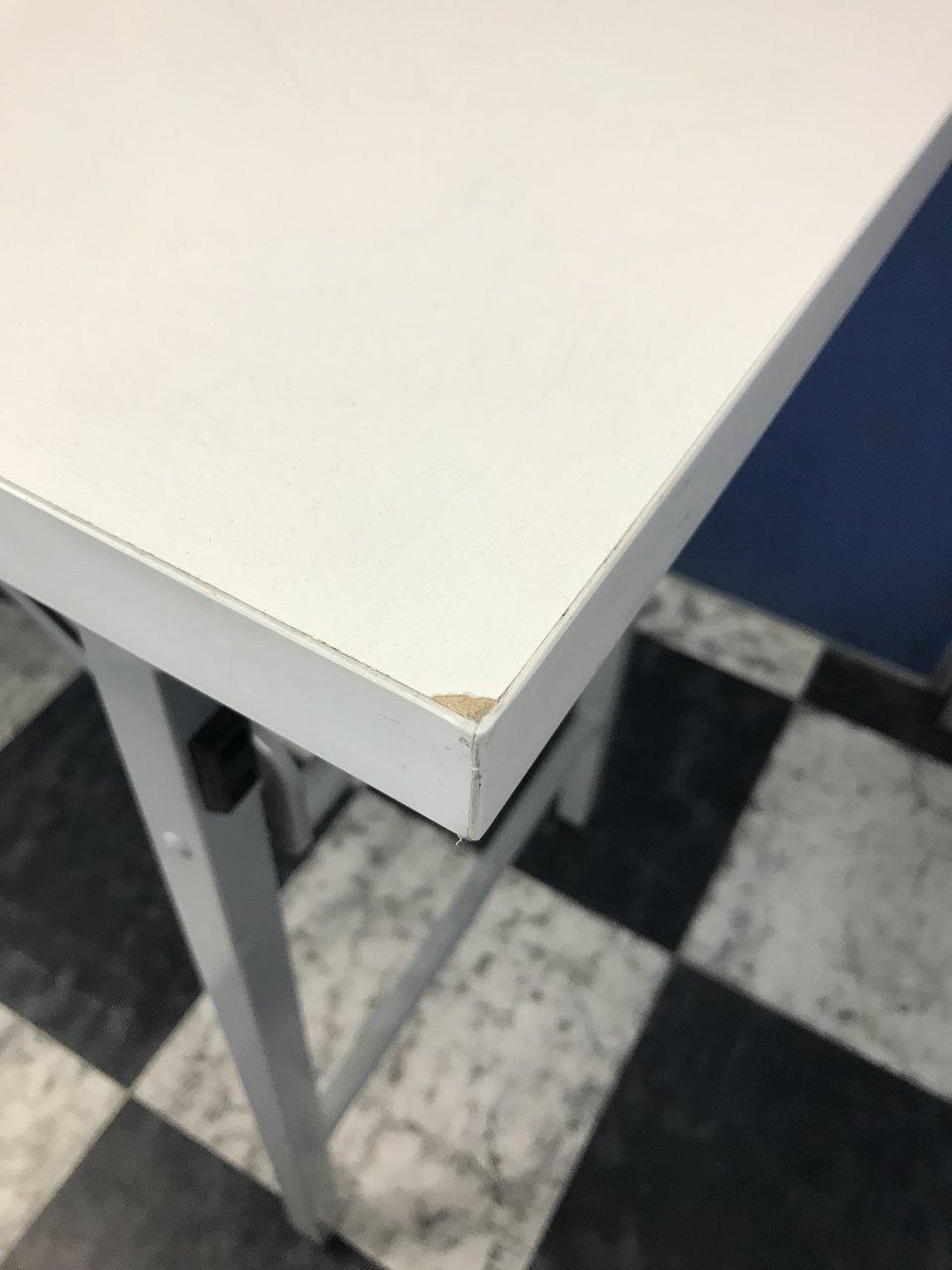 - 壊れている天板歪み、アジャスター無し、キャスター使用不可のようにそのテーブルの本来の効用を果たすための機能に不具合がある。