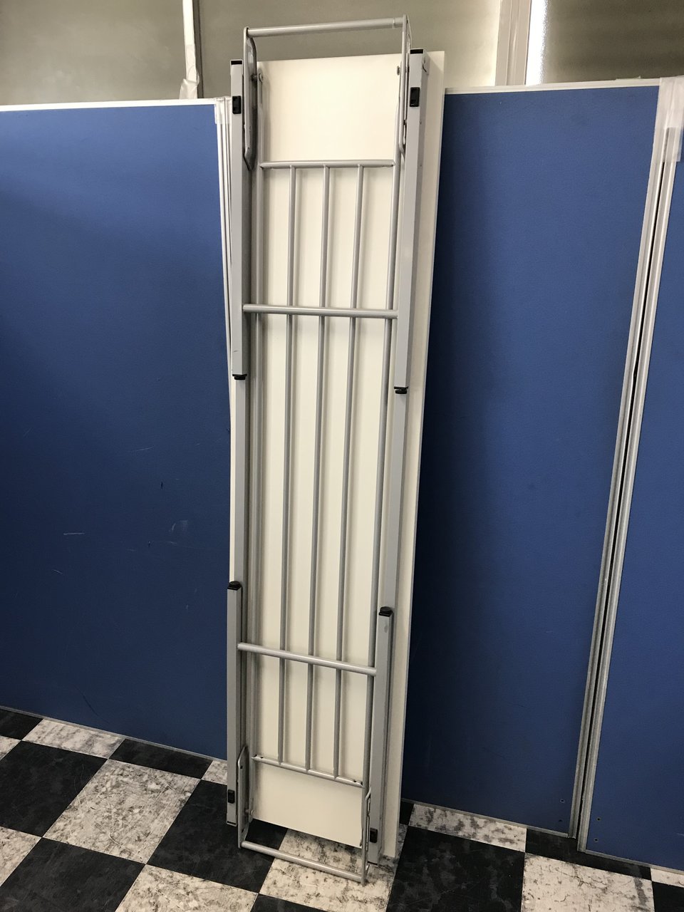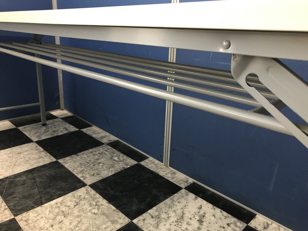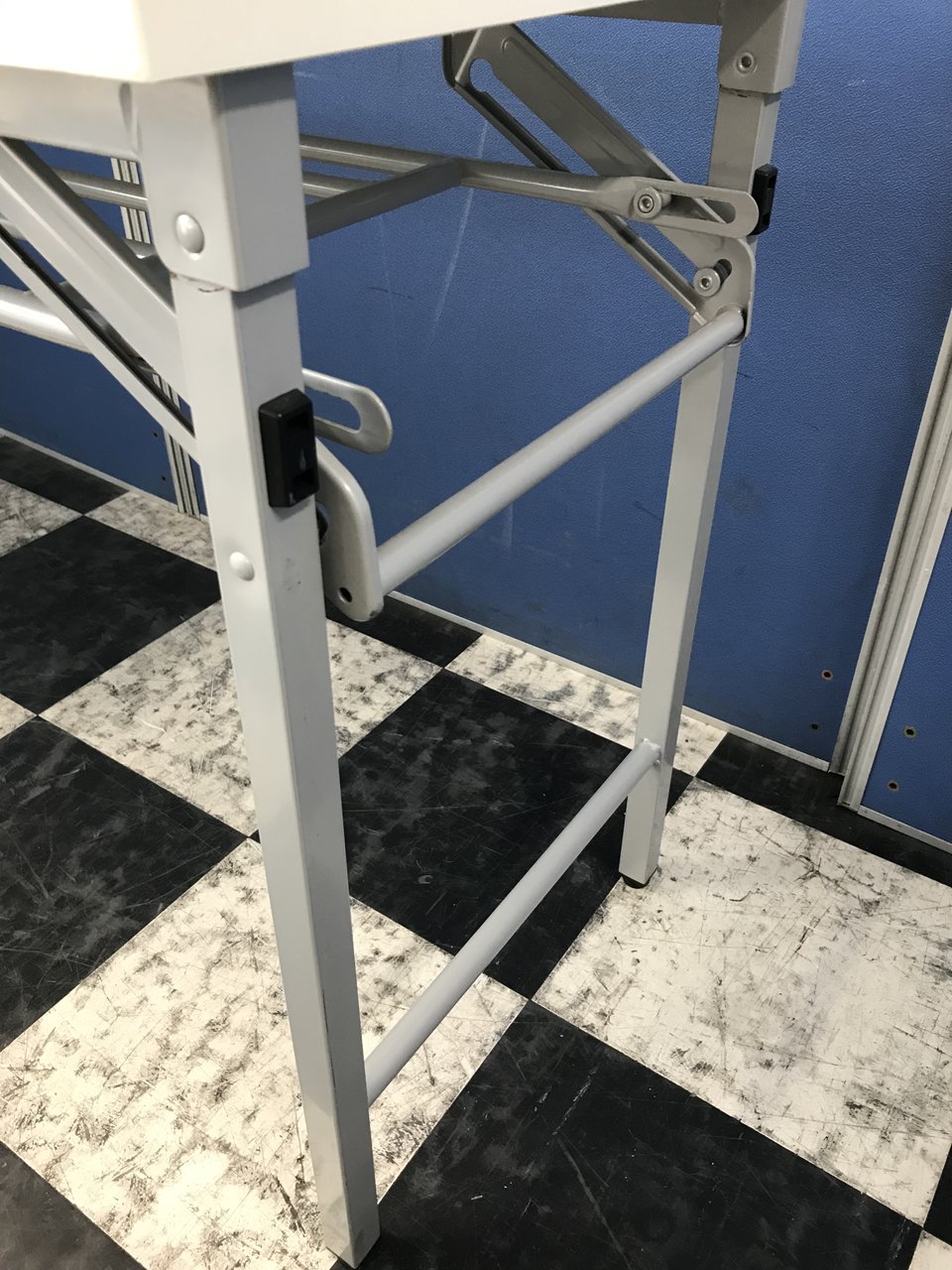 - 一部不具合あり天板歪み、アジャスター無し、キャスター使用不可ようなそのテーブルの本来の効用を果たすための機能以外の一部が使用不可な状態。(例、キャスターロッ ク機能使用不可、棚板無し等がある。)