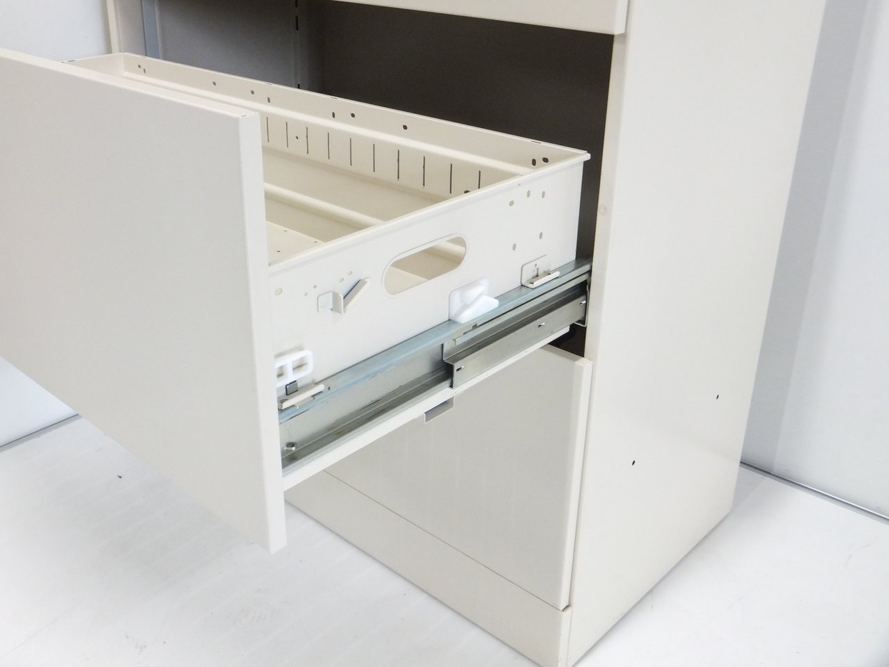 - 壊れている引出の開閉不可、施錠不可、棚板無しといったその書庫の本来の効用を果たすための機能に不具合がある(例、扉、引出の開閉が行えない。)