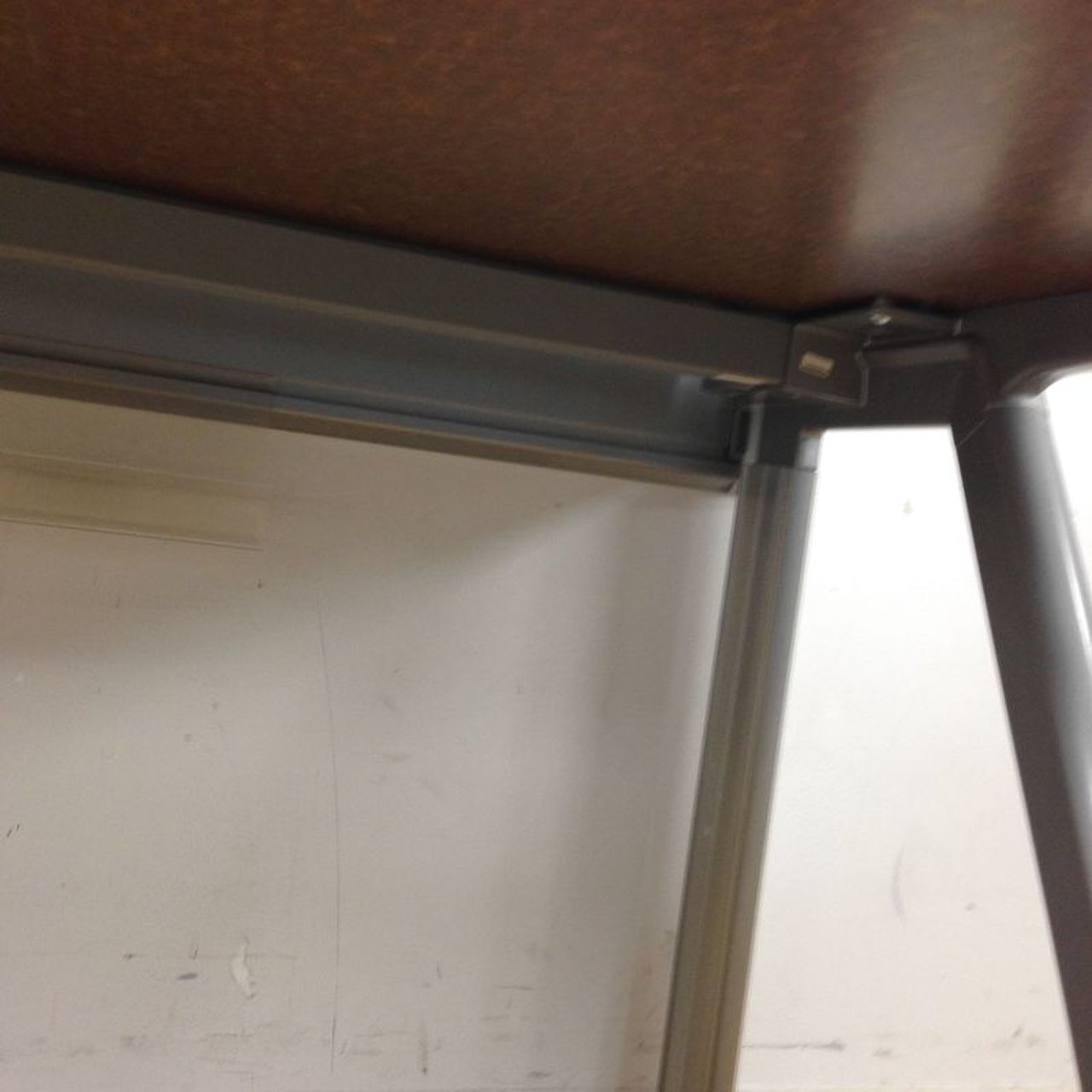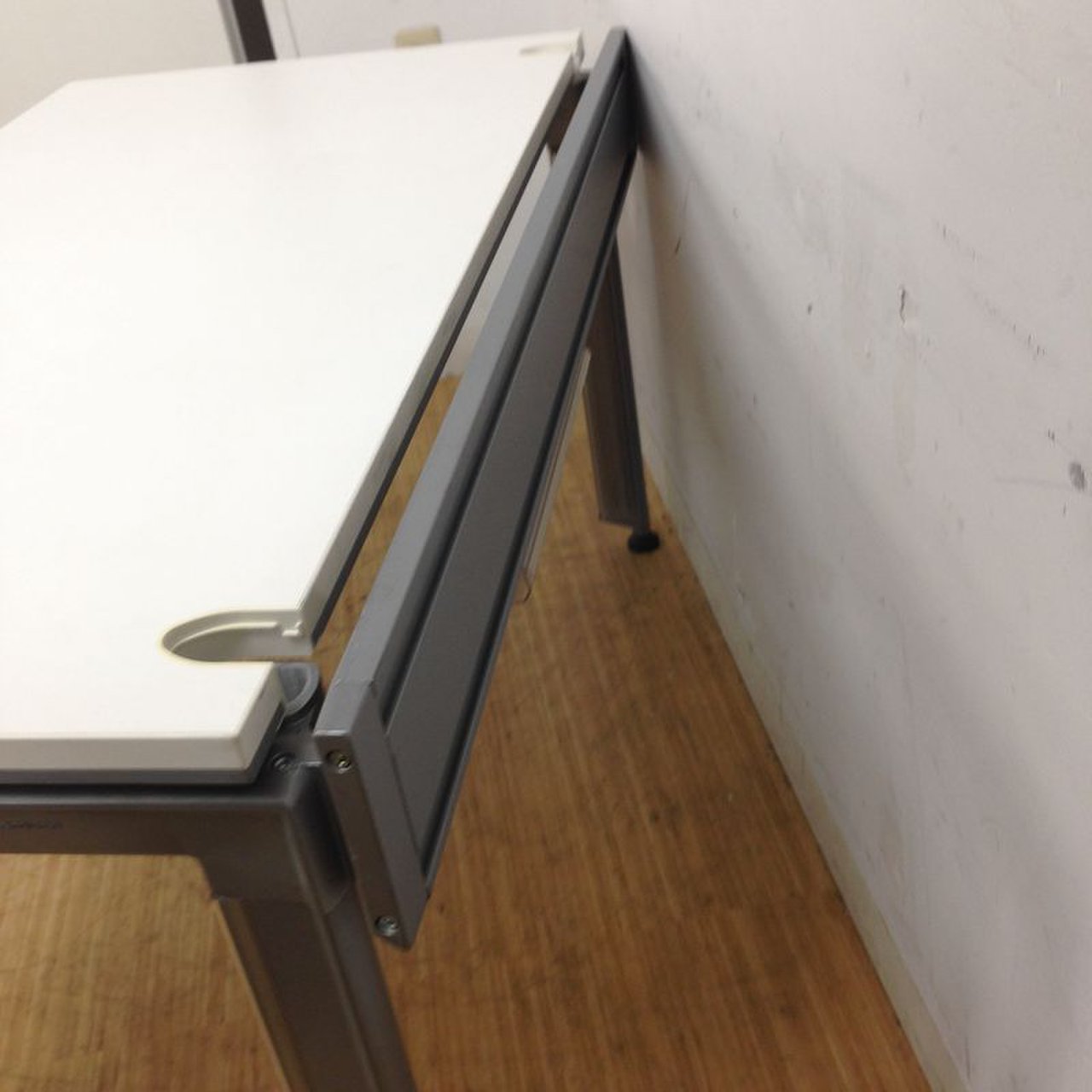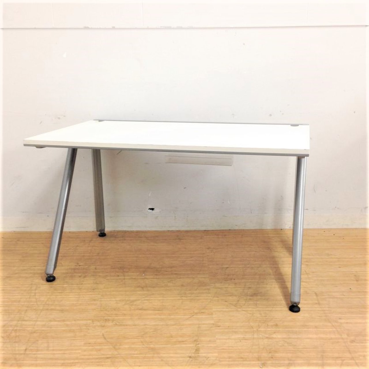 スタイリッシュなシルバーの脚、ホワイトの天板