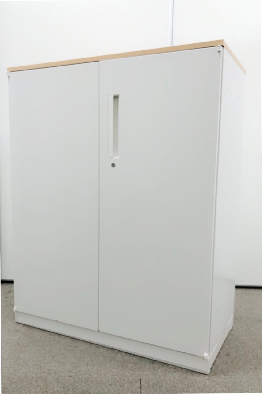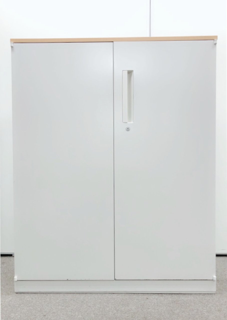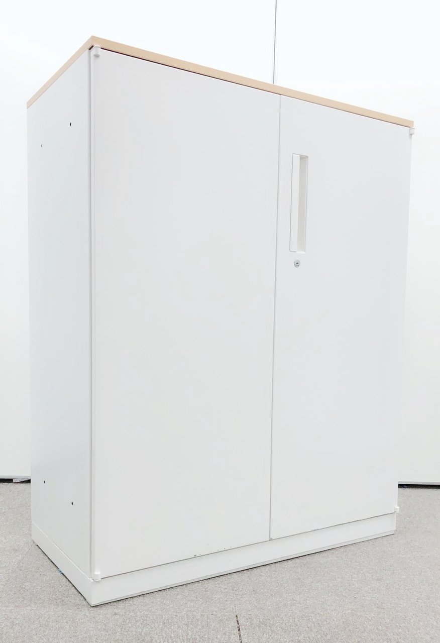 【在庫入替セール品!】人気の観音開きタイプ!取っ手が大きく使い勝手のよい定番キャビネット! ■内田洋行/HSシリーズ/ホワイト 天板ナチュラル