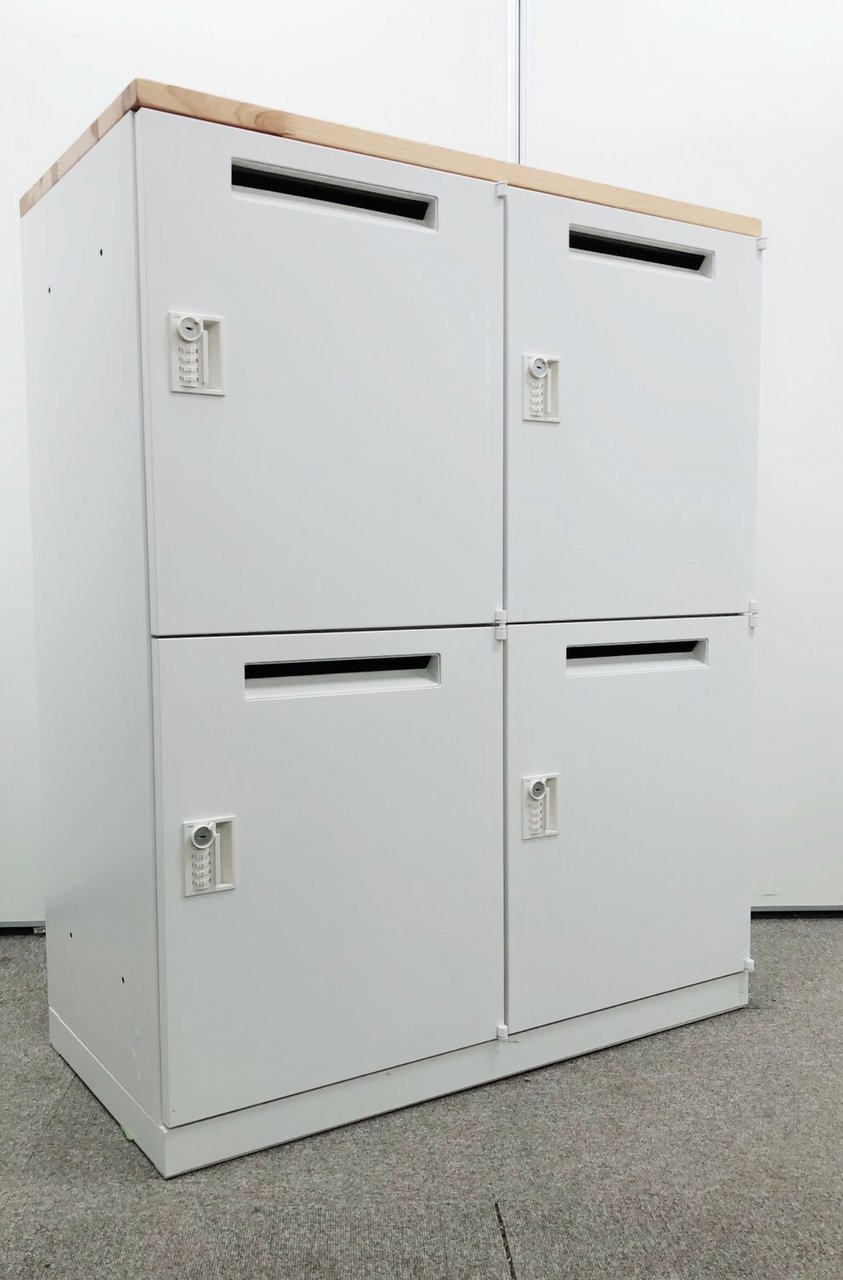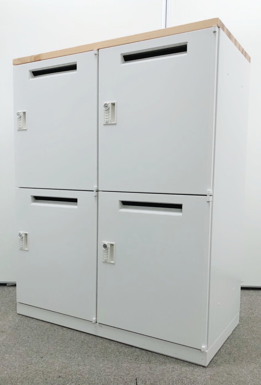 【4名様用ダイヤル式メールロッカー】【お客様のプライバシー守ります】【ホワイトに木目の天板】- 日本橋店