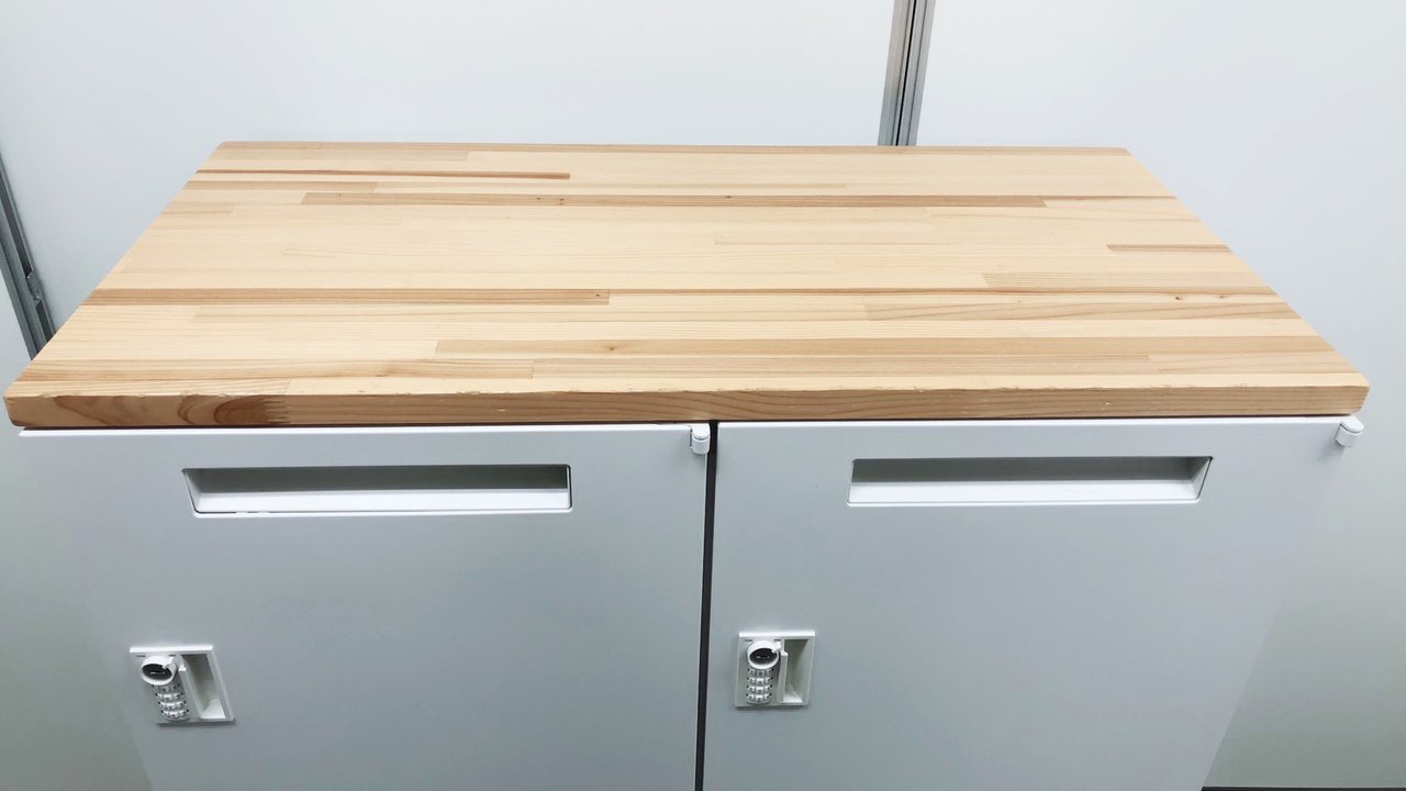 天板は木目となっており、本体はホワイトと珍しいロッカーです。