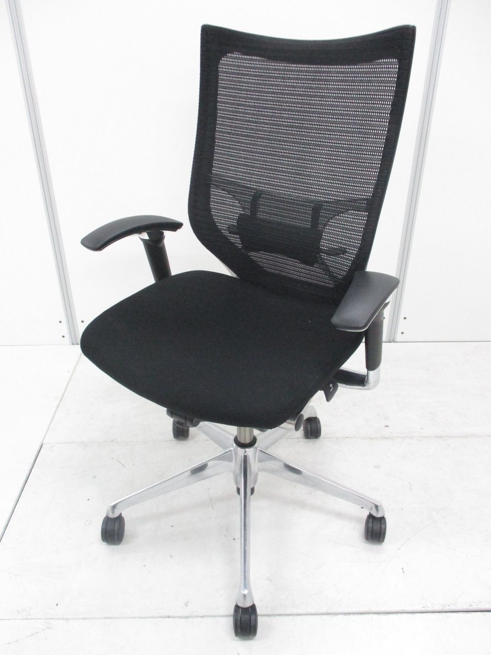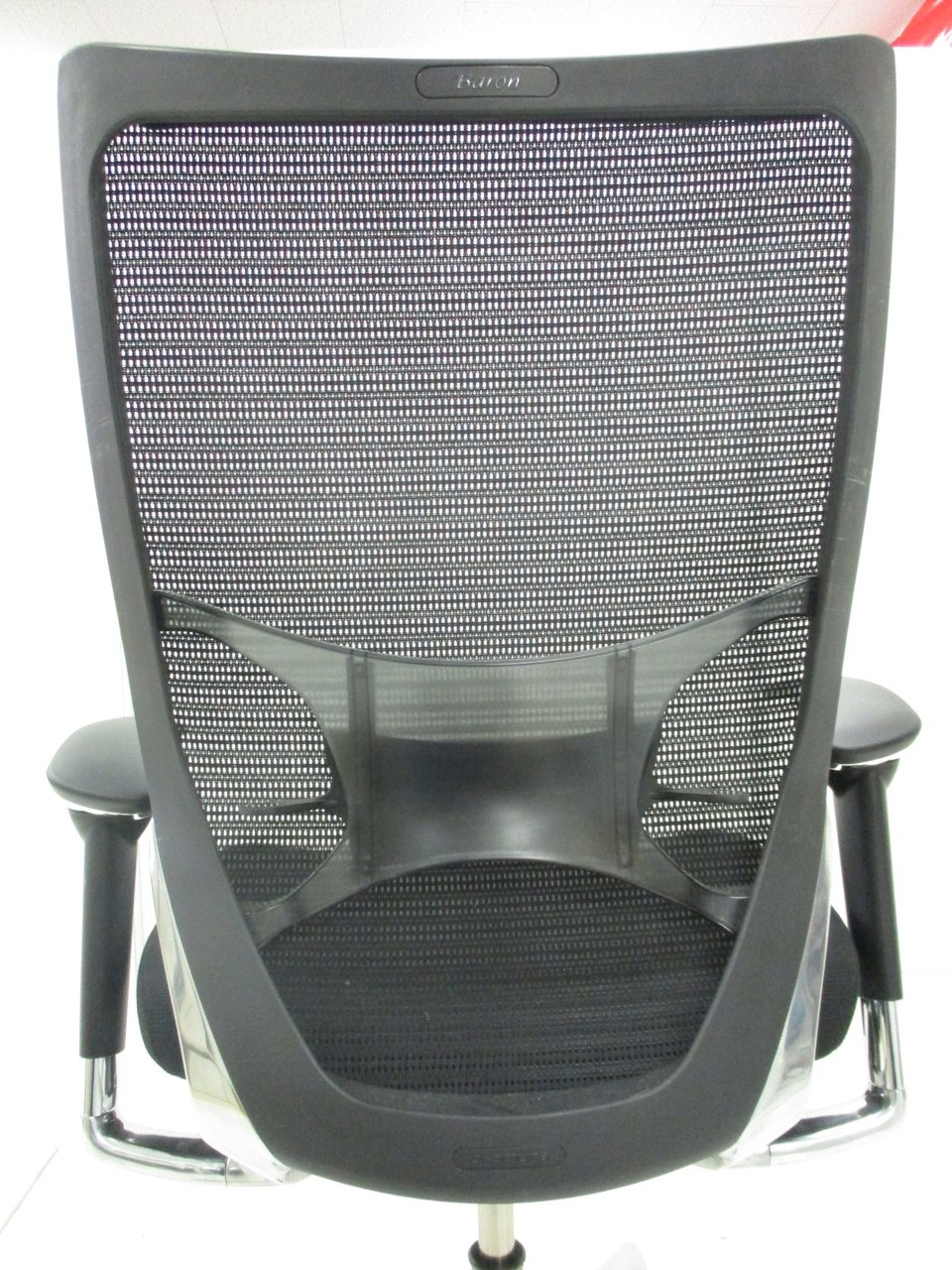 【硬めの座面が大人気!国産メッシュチェアの代表格!オフィスの執務室、会議室におすすめ!】■オカムラ(okamura)製 バロン(Baron)チェア 肘付き ハイバック 背面メッシュ ■固定肘 ■色:ブラック【IB】