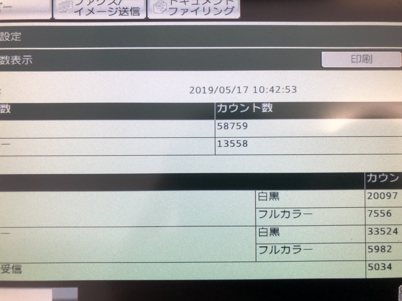 モノクロ:58759枚/ カラー:13558枚と、総印刷枚数が少なく、まだまだご使用いただけます。