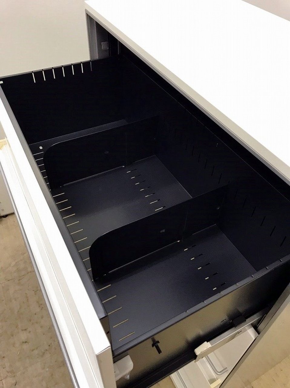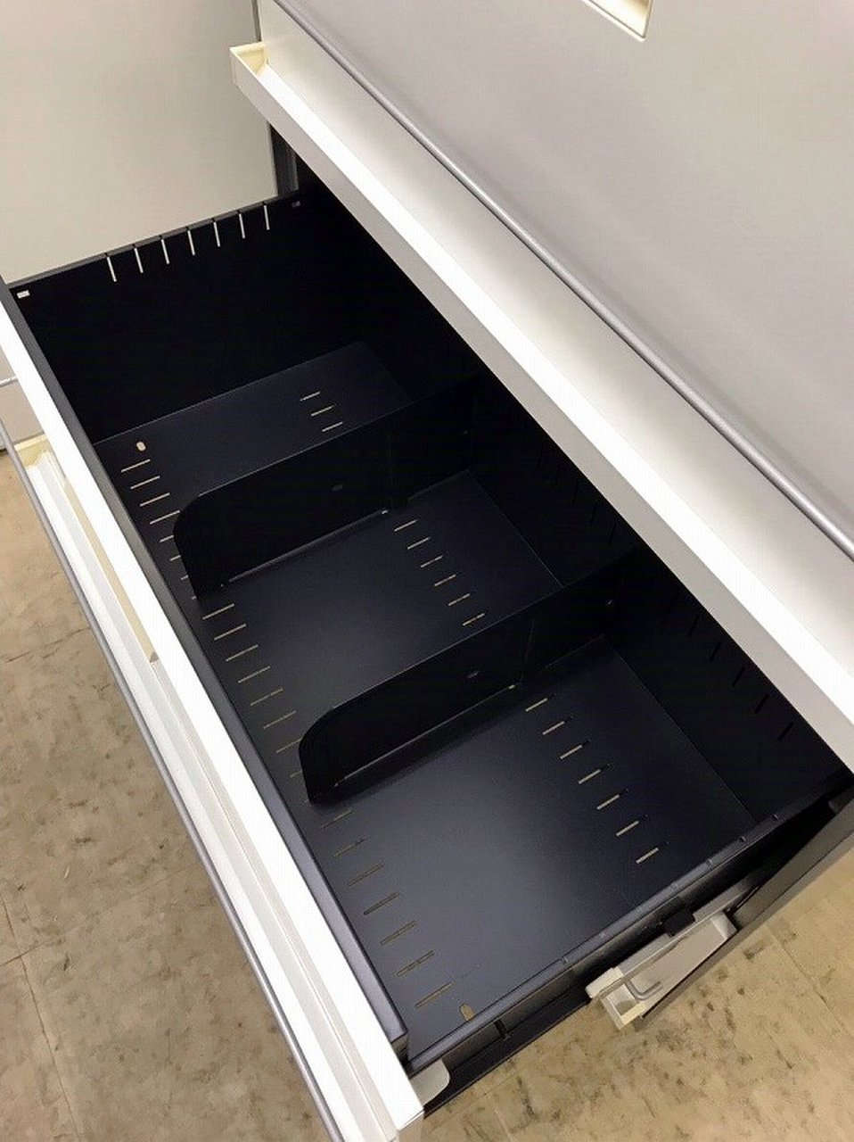 - 一部不具合ありそ引出の開閉不可、施錠不可、棚板無しといったの書庫の本来の効用を果たすための機能以外の一部が使用不可(例、扉、引出の開閉がしづらいなどがある。 )