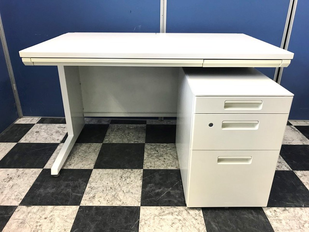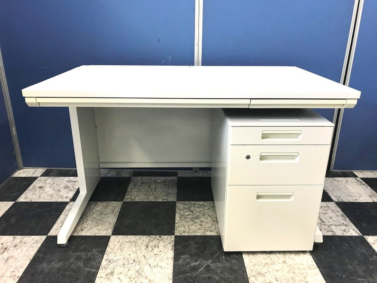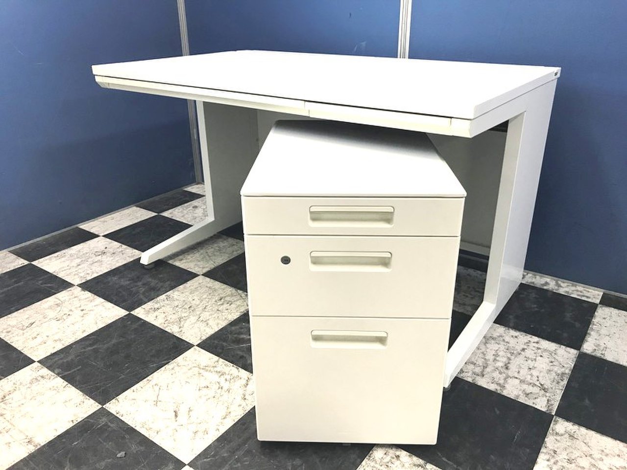 きれいなホワイトのデスクに3段ワゴンのセット!片袖机をお探しの方にもオススメです- 埼玉本店