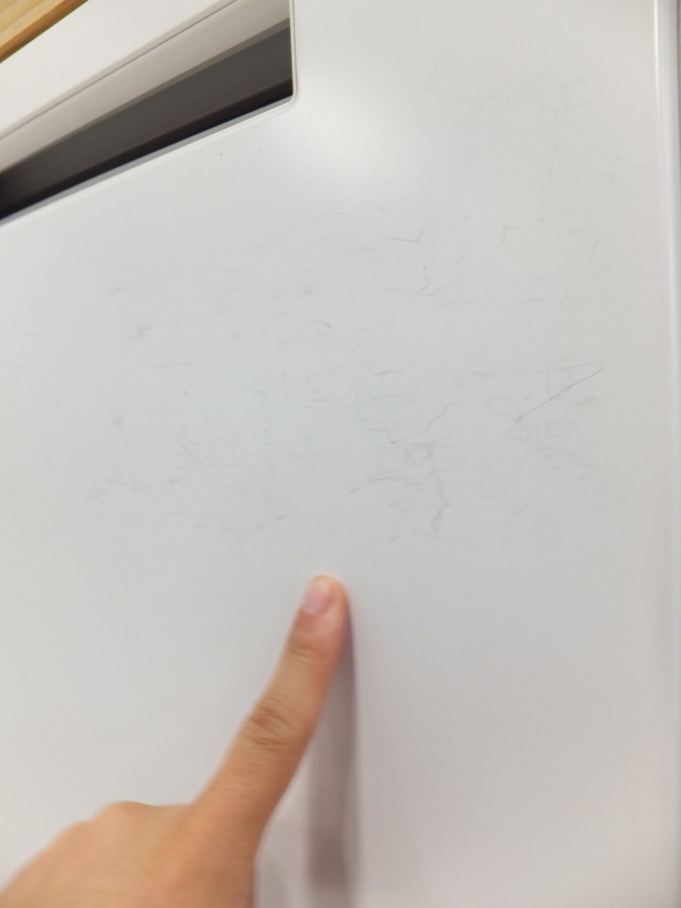 - 目立つ箇所あり傷・凹みが多数、深い傷・凹みが一部ある。(例、天板、正面、背部、サイド部分にある。)