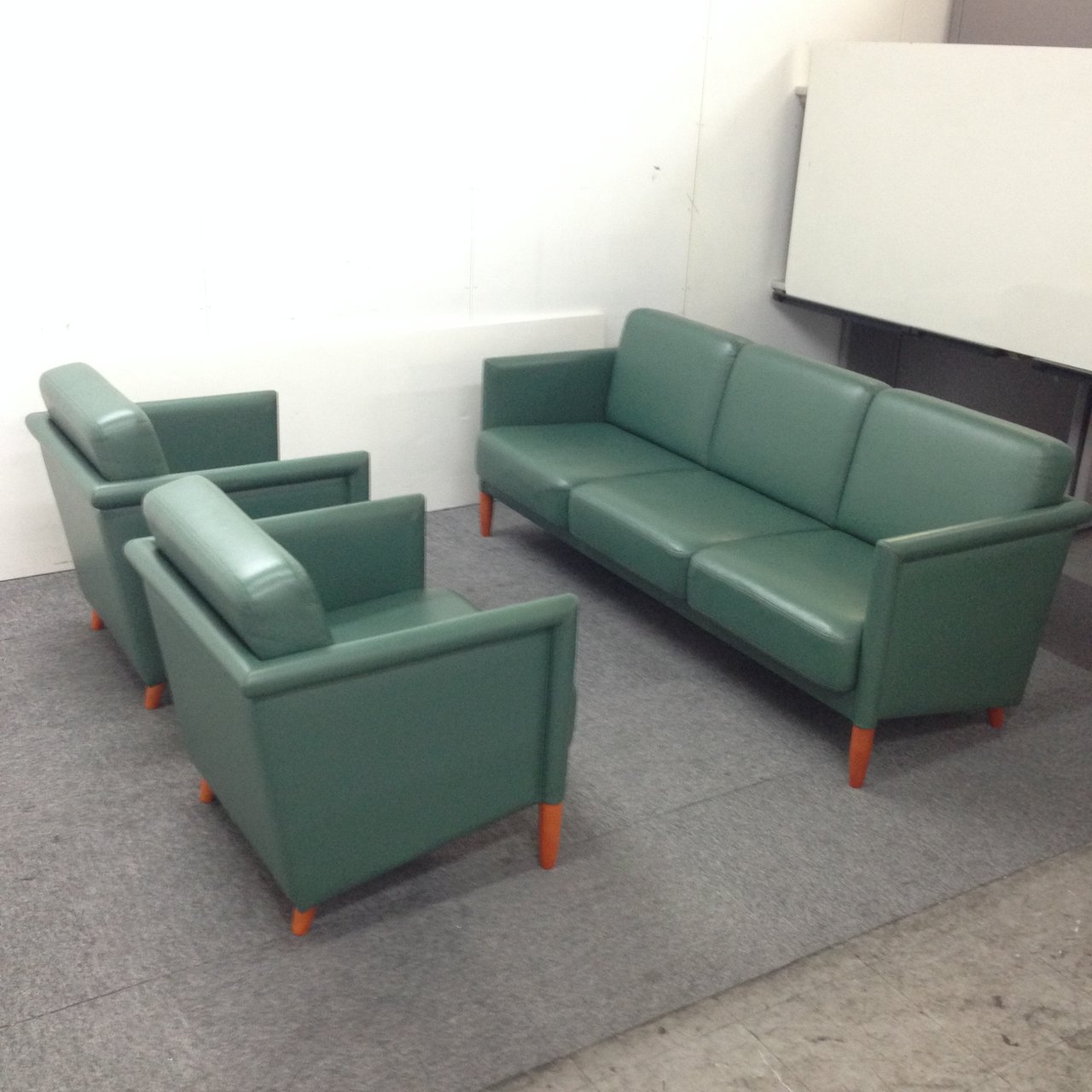 【大特価】【レアなセット☆】オカムラ製のお買い得応接セット!!【落ち着いた緑色が素敵です♪】- 豊中・尼崎店