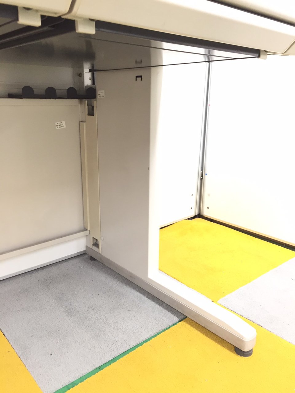 チェアはデスクの上や中に入れて保管しております。もちろん試座も可能ですので、お気軽にお申し付けください!