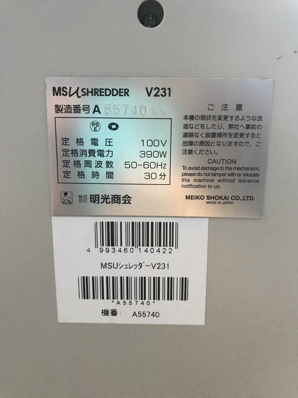 【中古】 MSVシリーズ MS-V231 明光商会 シュレッダー 258049