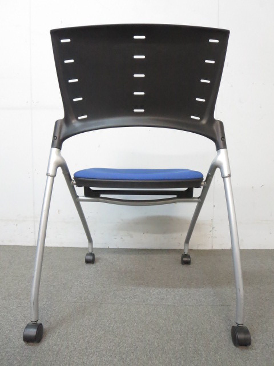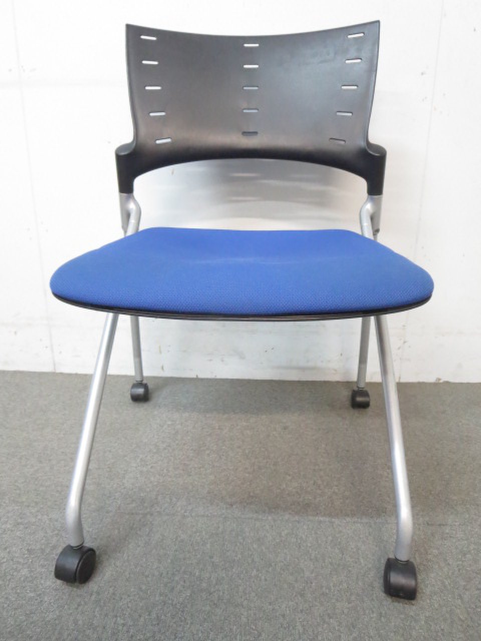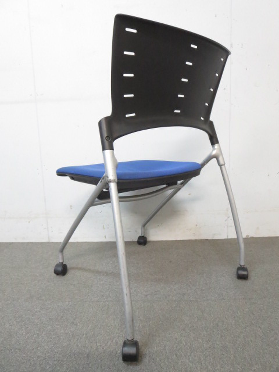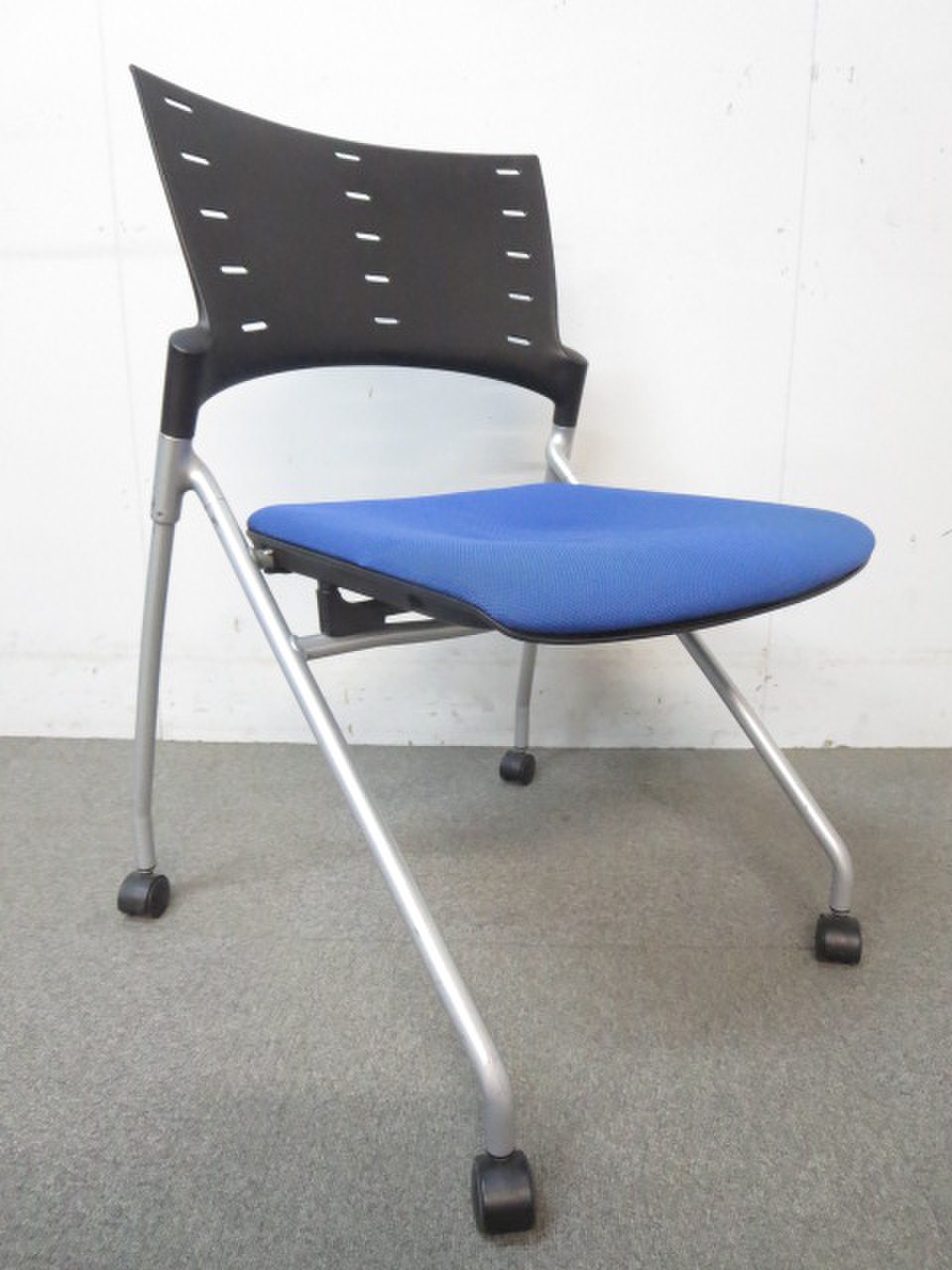 【キャスター付でスムーズにフォーメーションチェンジ!】■イトーキ製 ネスティングチェア ブルー【水平スタッキング】【マノスチェア】- 川崎店