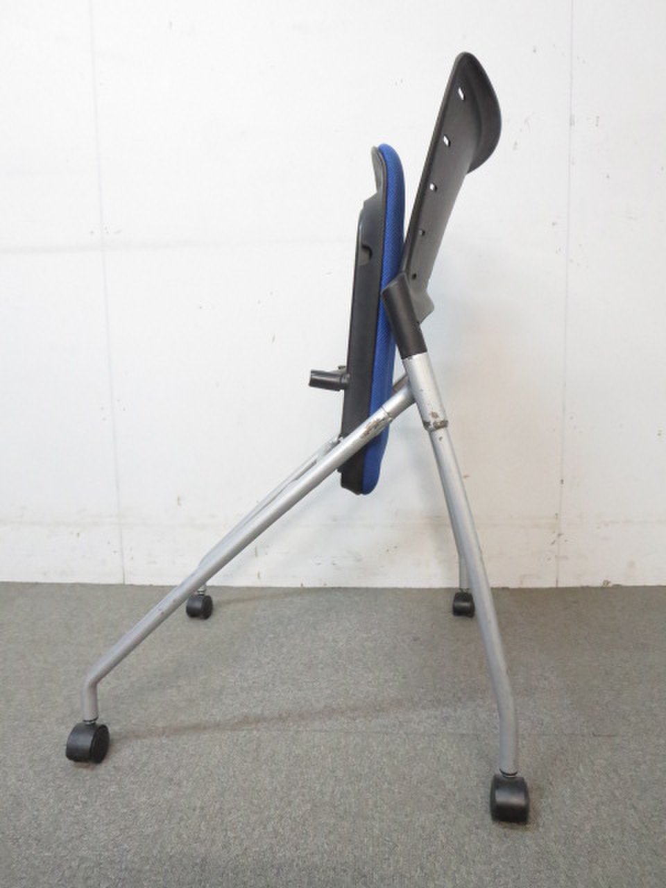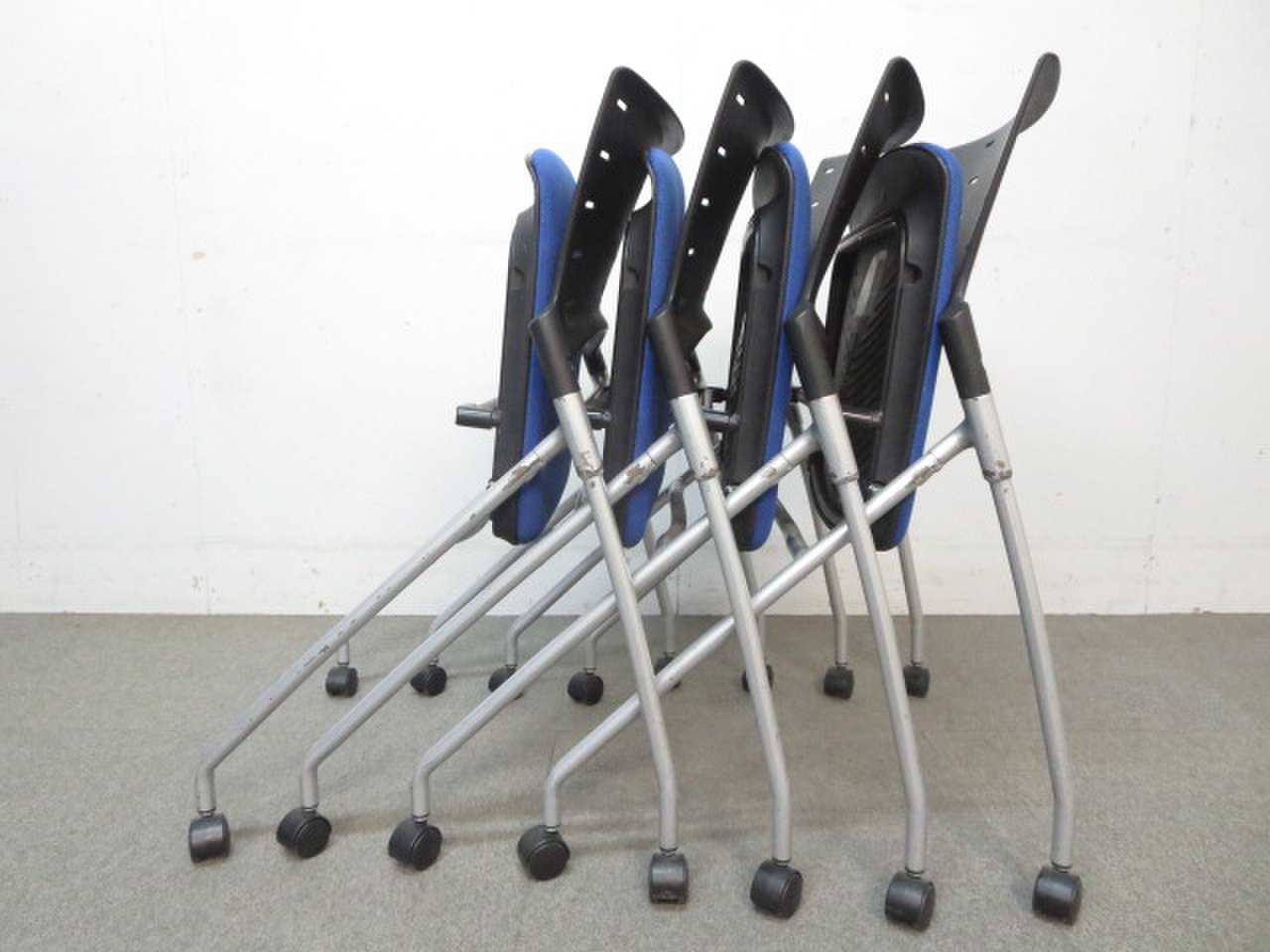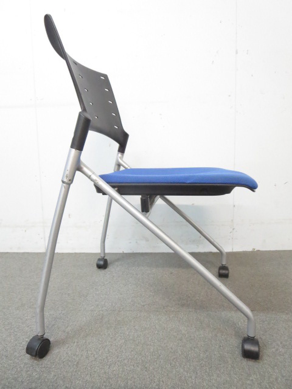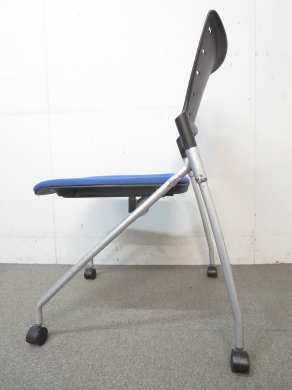 【キャスター付でスムーズにフォーメーションチェンジ!】■イトーキ製 ネスティングチェア ブルー【水平スタッキング】【マノスチェア】- 川崎店