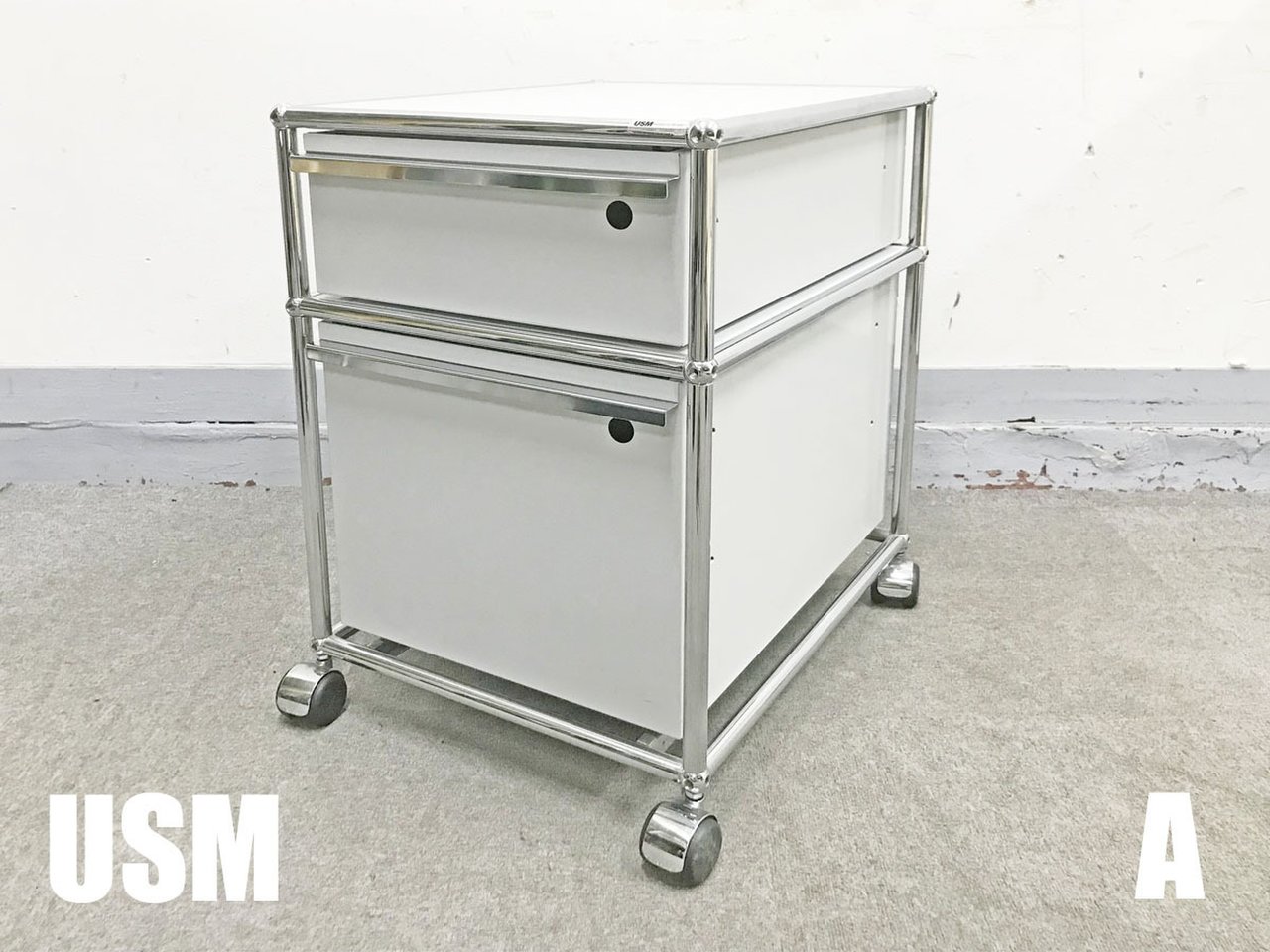 システムキャビネットメーカー『USMハラー』のデスク用ワゴンunit Fです。 デスクワゴンとしてはもちろん、ベッドサイドのナイトテーブルやキッチン周りの収納キャビネットとしてもお使いいただけます。