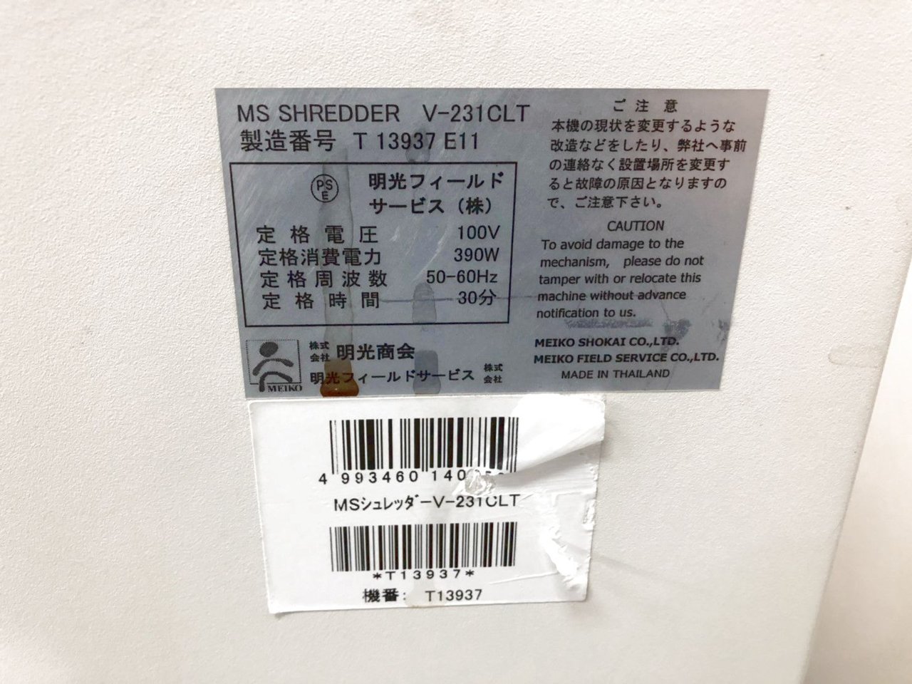 【中古】 MSシリーズ MS-V231CLT 明光商会 シュレッダー 258442