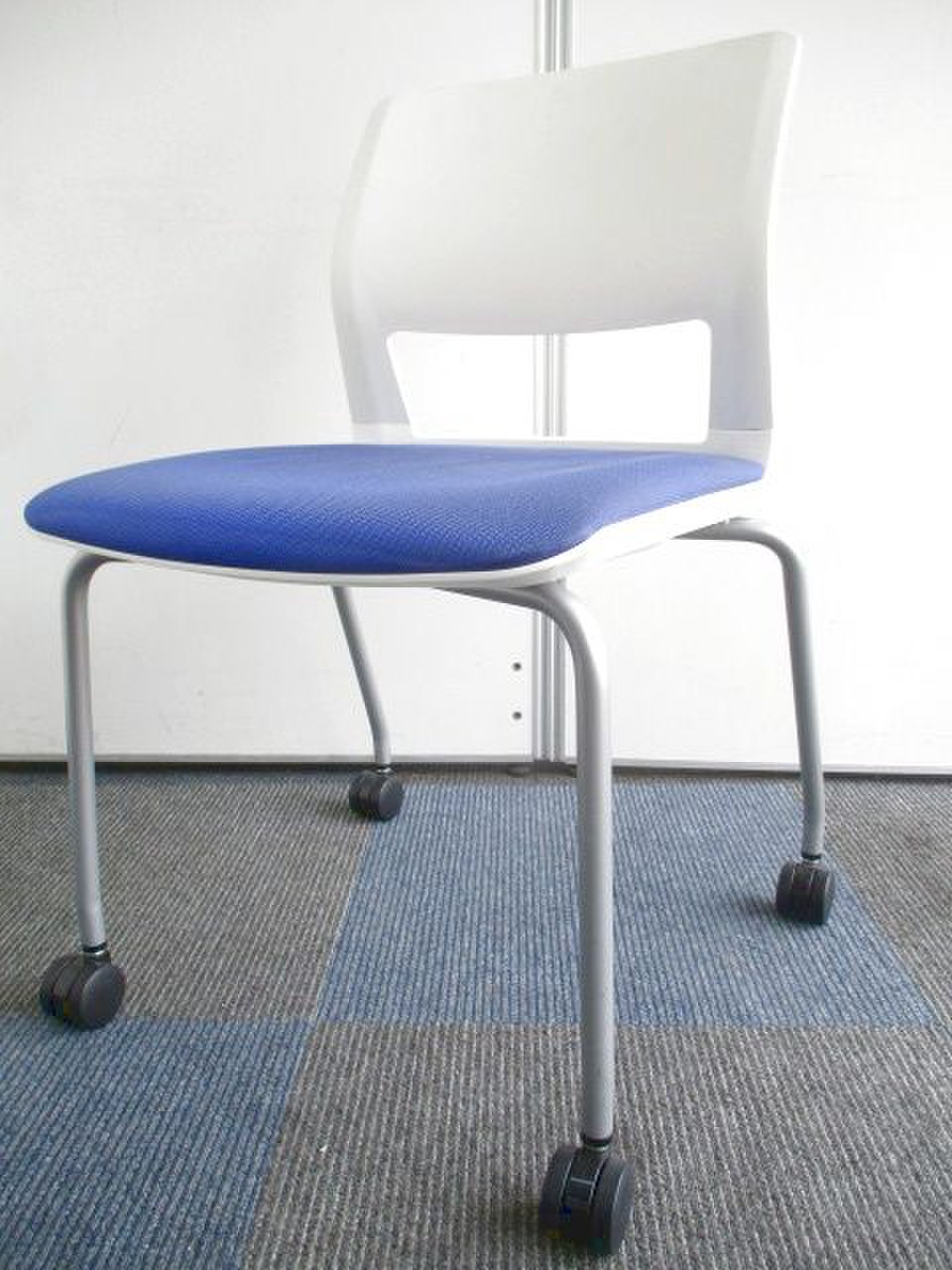 【重ねて収納可能!スペースの削減にお勧めなスタッキングチェア!】■コクヨ(KOKUYO)製 CK-160 スタッキングチェア ミーテイングチェア ■背カバーあり ■ブルー×ホワイトシェル