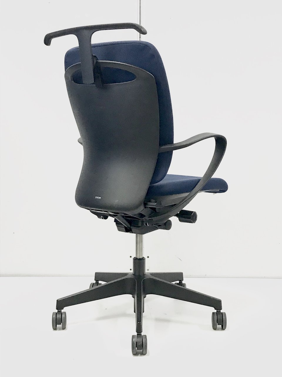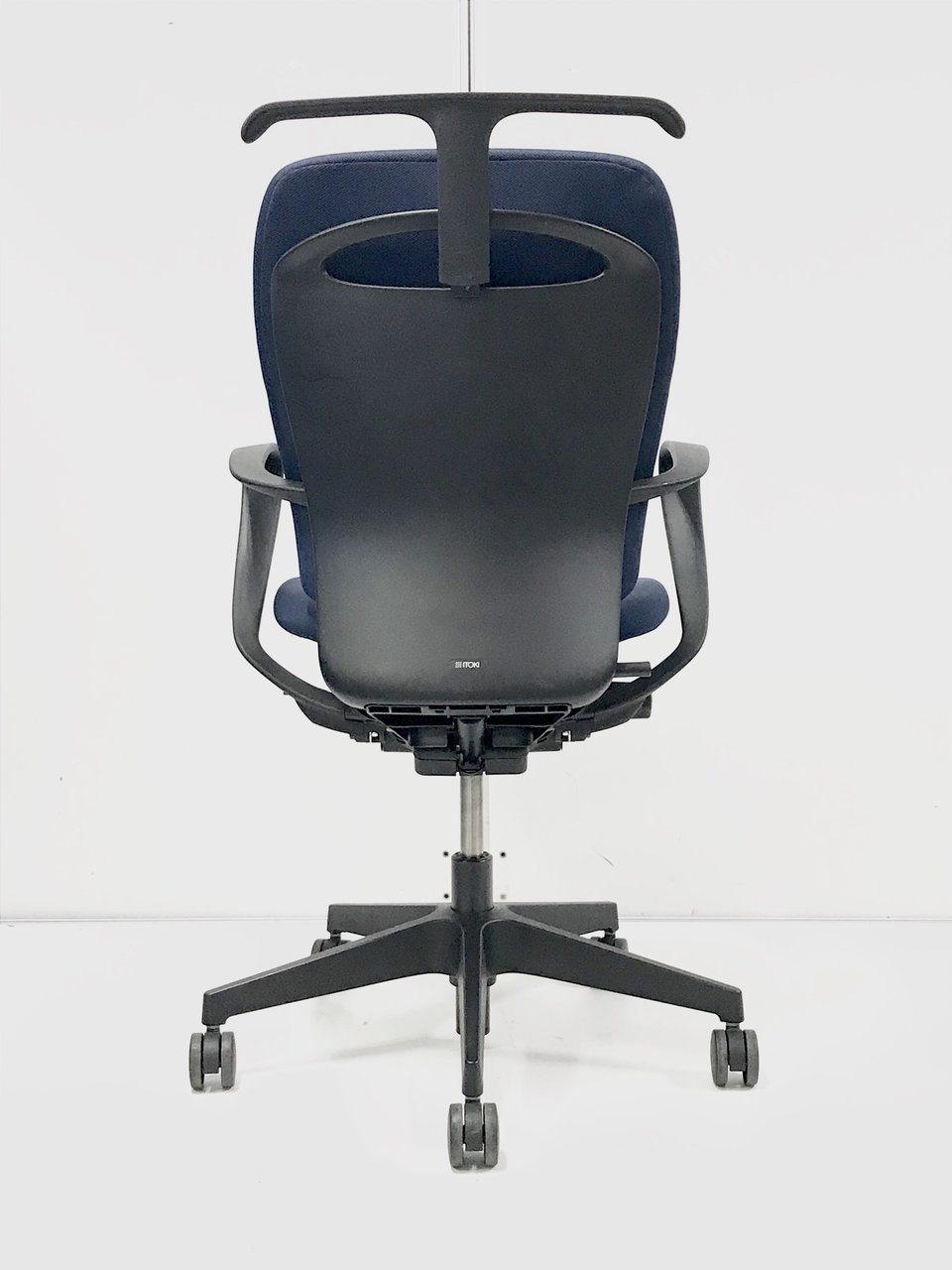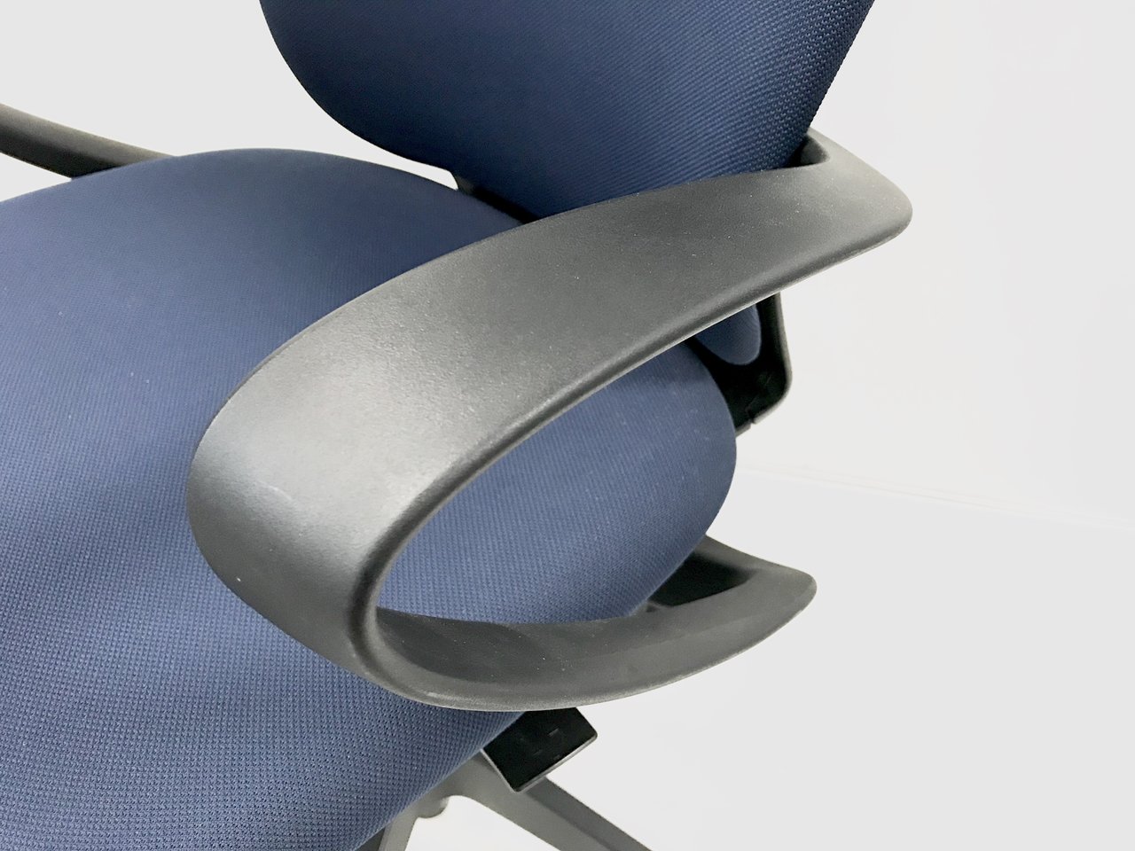 【背もたれ・座面使用感のすれあり】イトーキ製 人気高いフルゴシリーズ ブラック×ネイビーブルー 肘付きローバックチェア!!【関西倉庫在庫】