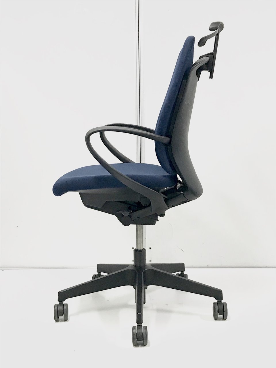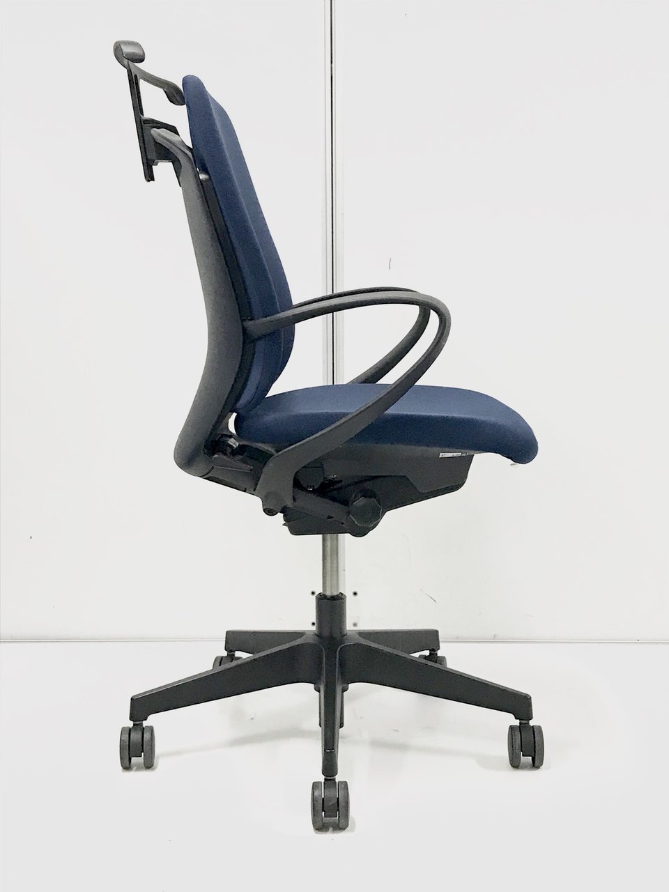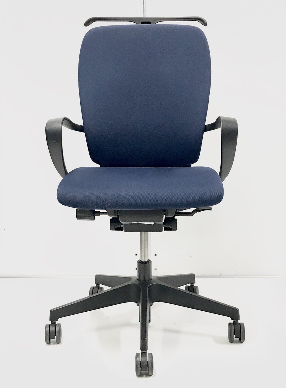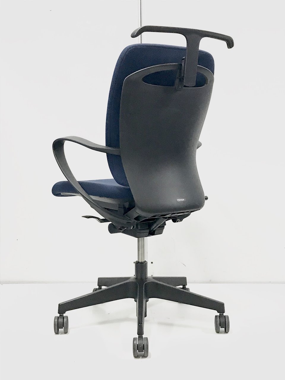 【背もたれ・座面使用感のすれあり】イトーキ製 人気高いフルゴシリーズ ブラック×ネイビーブルー 肘付きローバックチェア!!【関西倉庫在庫】