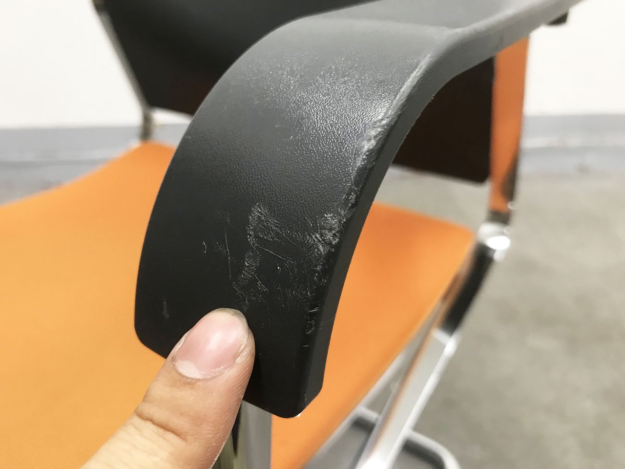 - 目立つ箇所あり傷・破れ・ほつれ・へたり・しわが多数または深い傷・破れ・ほつれ・へたり・しわが一部ある。※座面・背もたれ、シェル、脚部等にある。