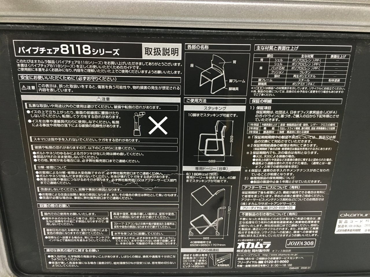 オカムラ製スタッキングチェア・8118シリーズ4脚を限定1組セット販売中!