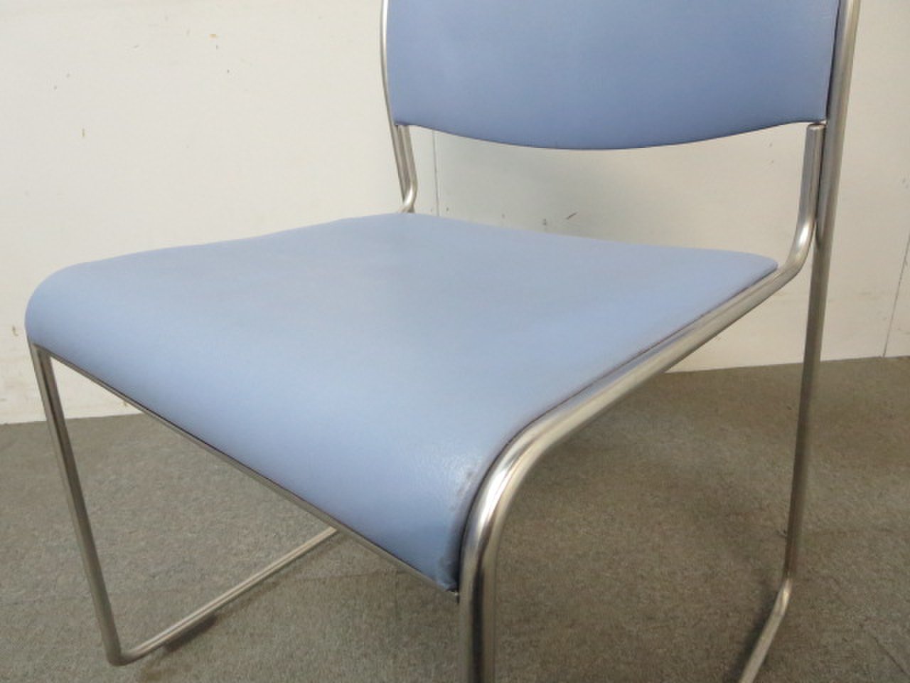 【スタンダードなデザイン!】■ウチダ スタッキングチェア ■ブルー(ビニールレザー)- 川崎店