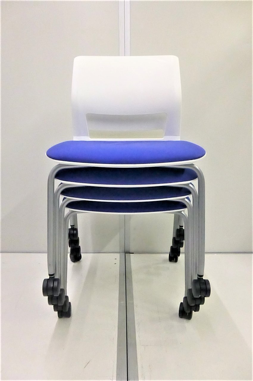 【重ねて収納可能!スペースの削減にお勧めなスタッキングチェア!】■コクヨ(KOKUYO)製 CK-160 スタッキングチェア ミーテイングチェア ■背カバーあり ■ブルー×ホワイトシェル