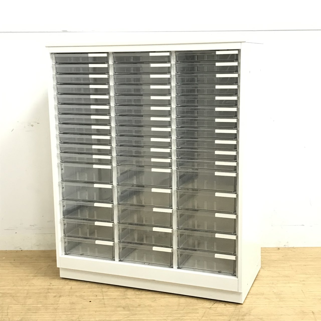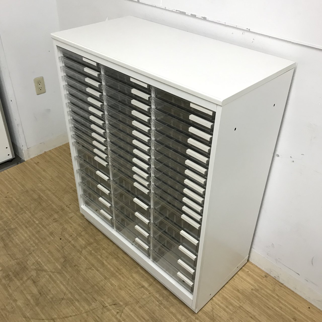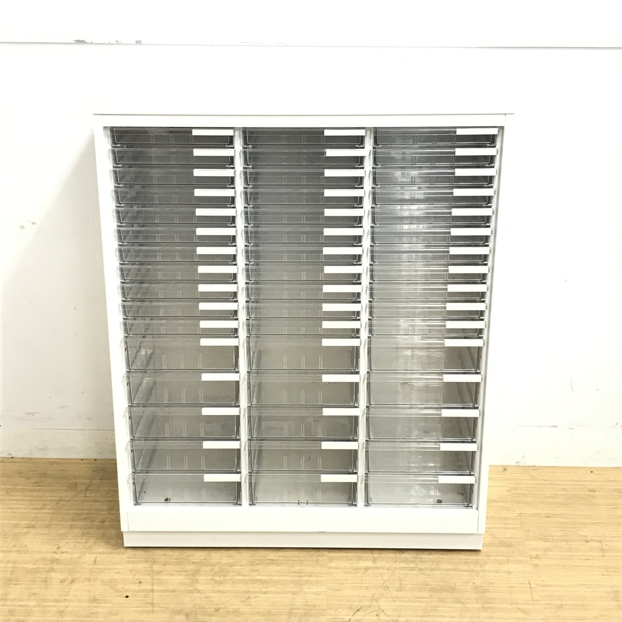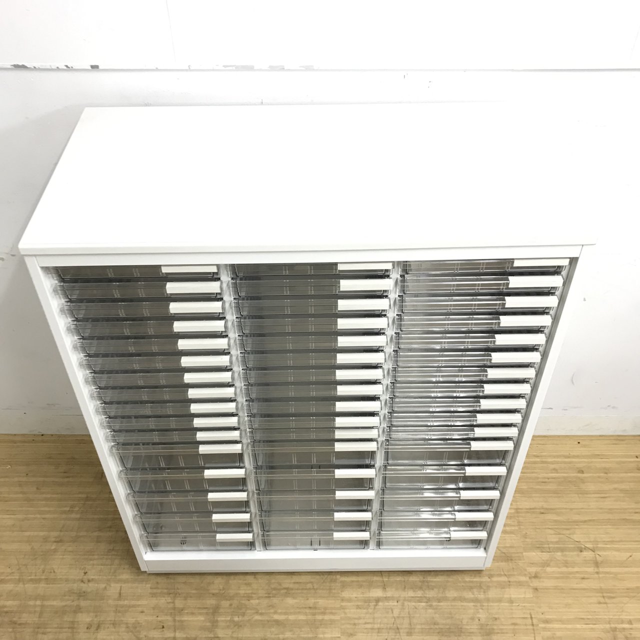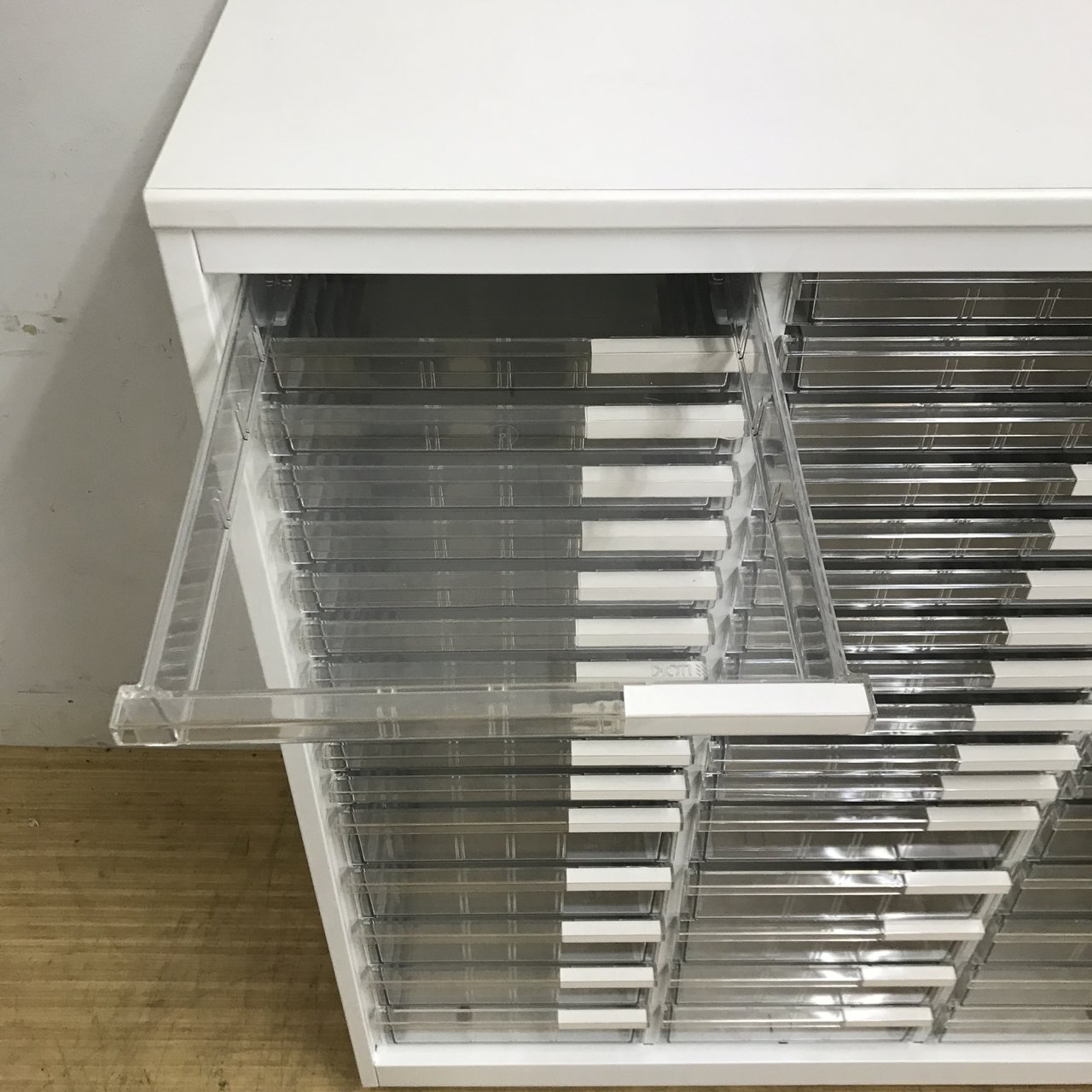 【書類・備品整理の必需品!】【珍しいクリトレが入荷!3列×浅型11段+深型5段】■イトーキ(ITOKI)製 シンラインシリーズ クリスタルトレー ローキャビネット ■3列×浅型11段+深型5段 ■天板・ベース付 ■色:ホワイト