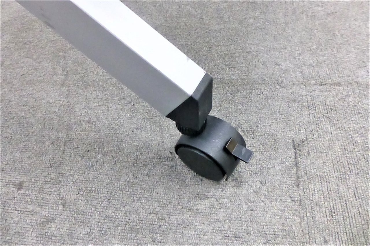 - 一部不具合あり天板歪み、アジャスター無し、キャスター使用不可ようなそのテーブルの本来の効用を果たすための機能以外の一部が使用不可な状態。(例、キャスターロッ ク機能使用不可、棚板無し等がある。)