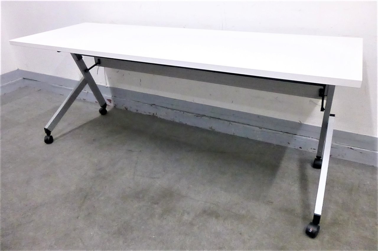 【折りたたみ収納が秀逸!スタイリッシュなデザインで高品質!】■ウチダ(UCHIDA)製 プラッテ(PLATTE)シリーズ サイドスタックテーブル W1500×D450㎜ ■キャスター付 ■ホワイト