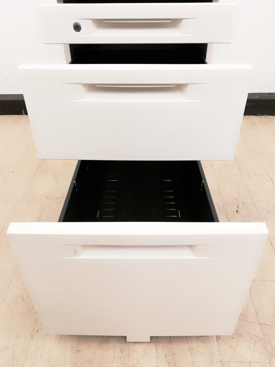 【3段入荷】状態良好真っ白ワゴン!セットで平机もぜひ!”オカムラ製ヴィラージュ(Village)- 春日部・越谷店