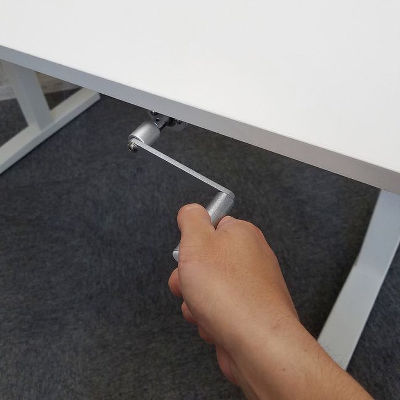 ホワイト天板の手動昇降デスクのご紹介です!